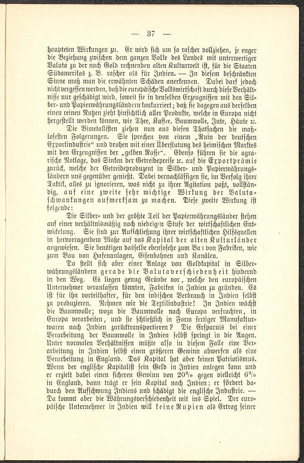 haupteten Wirkungen zu. Er wird sich um so rascher vollziehen, je engerdie Beziehung zwischen dem gcmzen Volke des Landes mit unterwertigcrValuta zu der nach Gold rechnenden alten Kulturwelt ist, sür die StaatenSüdamerikas z, B, rascher als für Indien. — In diesem beschränktenSinne muß man die erwähnten Schäden anerkennen. Dabei darf jedochnicht vergessen werden, daßdie europäische Volkswirtschaft durch diese Verhält-nisse nur geschädigt wird, soweit sie in denselben Erzengnissen mit den Sil-ber- und Papierwährungslündcrn konkurriert z daß sie dagegen aus derselbeneinen reinen Nutzen zieht hinsichtlich aller Produkte, welche in Europa nichthergestellt werden können, wie Thee, Kaffee, Baumwolle, Jute, Häute:c.