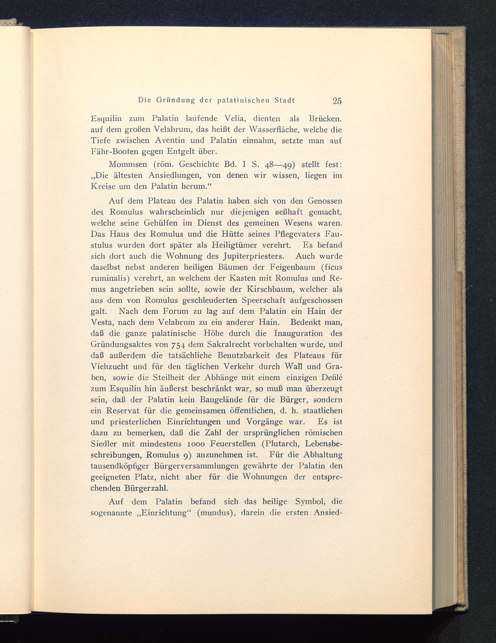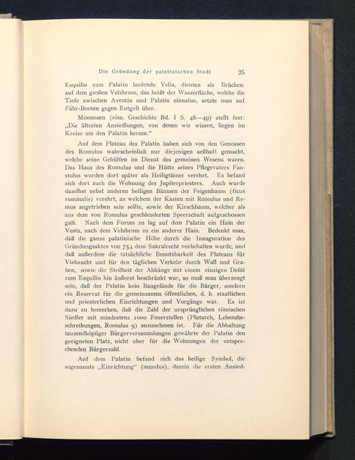Mommsen (röm. Geschichte Bd. I S. 48—49) stellt fest:„Die ältesten Ansiedlungen, von denen wir wissen, liegen imKreise um den Palatin herum.“