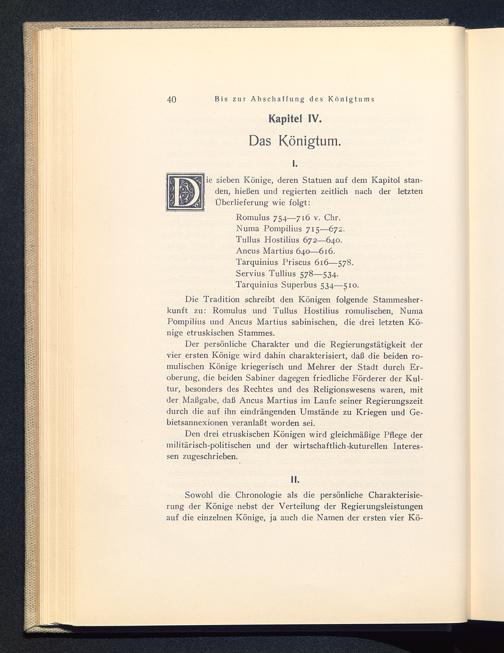 Der persönliche Charakter und die Regierungstätigkeit dervier ersten Könige wird dahin charakterisiert, daß die beiden ro-mulischen Könige kriegerisch und Mehrer der Stadt durch Er-oberung, die beiden Sabiner dagegen friedliche Förderer der Kul-tur, besonders des Rechtes und des Religionswesens waren, mitder Maßgabe, daß Ancus Martius im Laufe seiner Regierungszeitdurch die auf ihn eindrängenden Umstände zu Kriegen und Ge-bietsannexionen veranlaßt worden sei.
