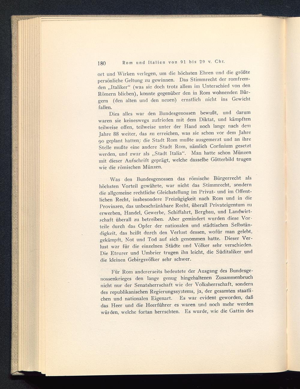ort und Wirken verlegen, um die höchsten Ehren und die größtepersönliche Geltung zu gewinnen. Das Stimmrecht der romfrem-den „Italiker“ (was sie doch trotz allem im Unterschied von denRömern blieben), konnte gegenüber den in Rom wohnenden Bür-gern (den alten und den neuen) ernstlich nicht ins Gewichtfallen.