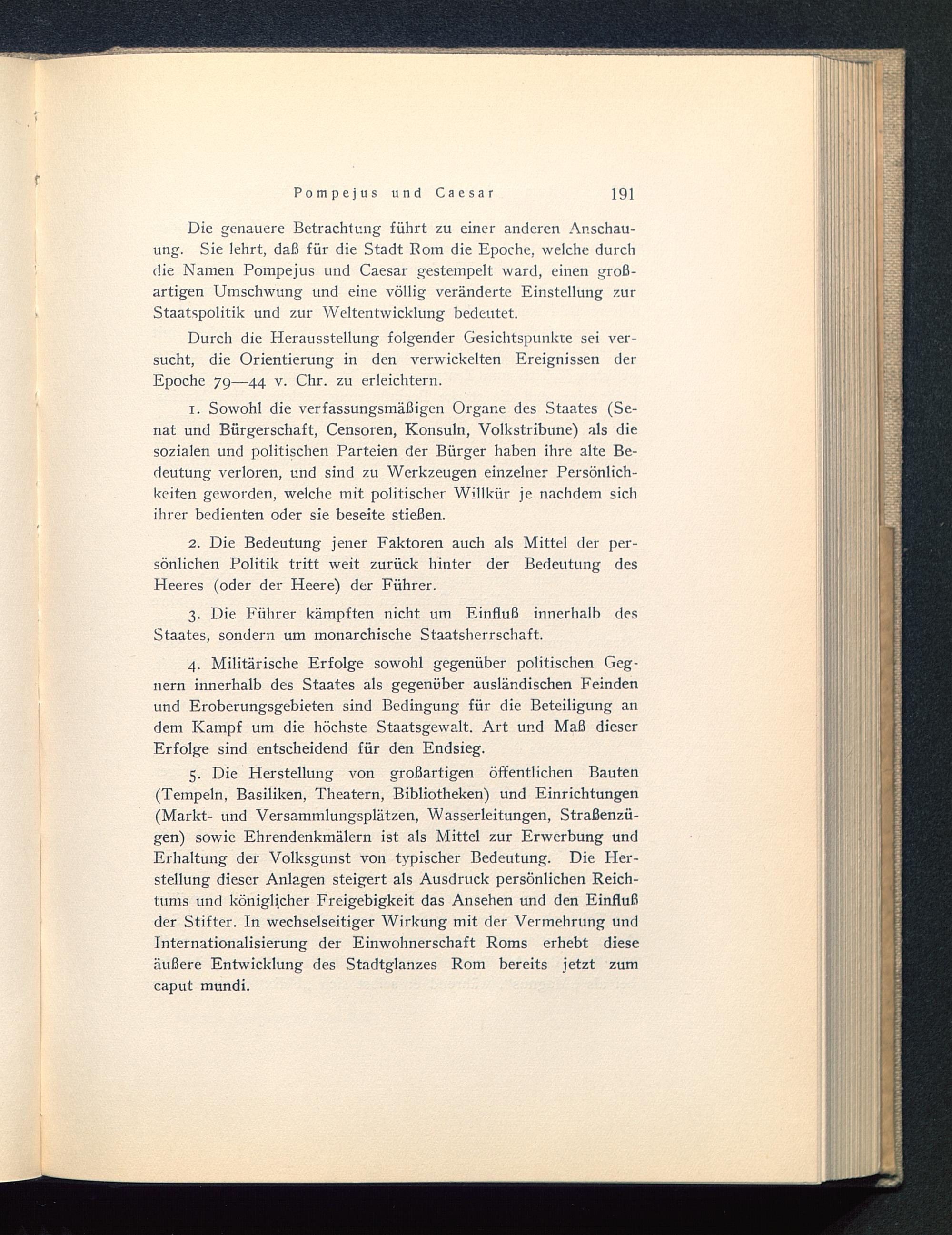Die genauere Betrachtung führt zu einer anderen Anschau-ung. Sie lehrt, daß für die Stadt Rom die Epoche, welche durchdie Namen Pompejus und Caesar gestempelt ward, einen groß-artigen Umschwung und eine völlig veränderte Einstellung zurStaatspolitik und zur Weltentwicklung bedeutet.