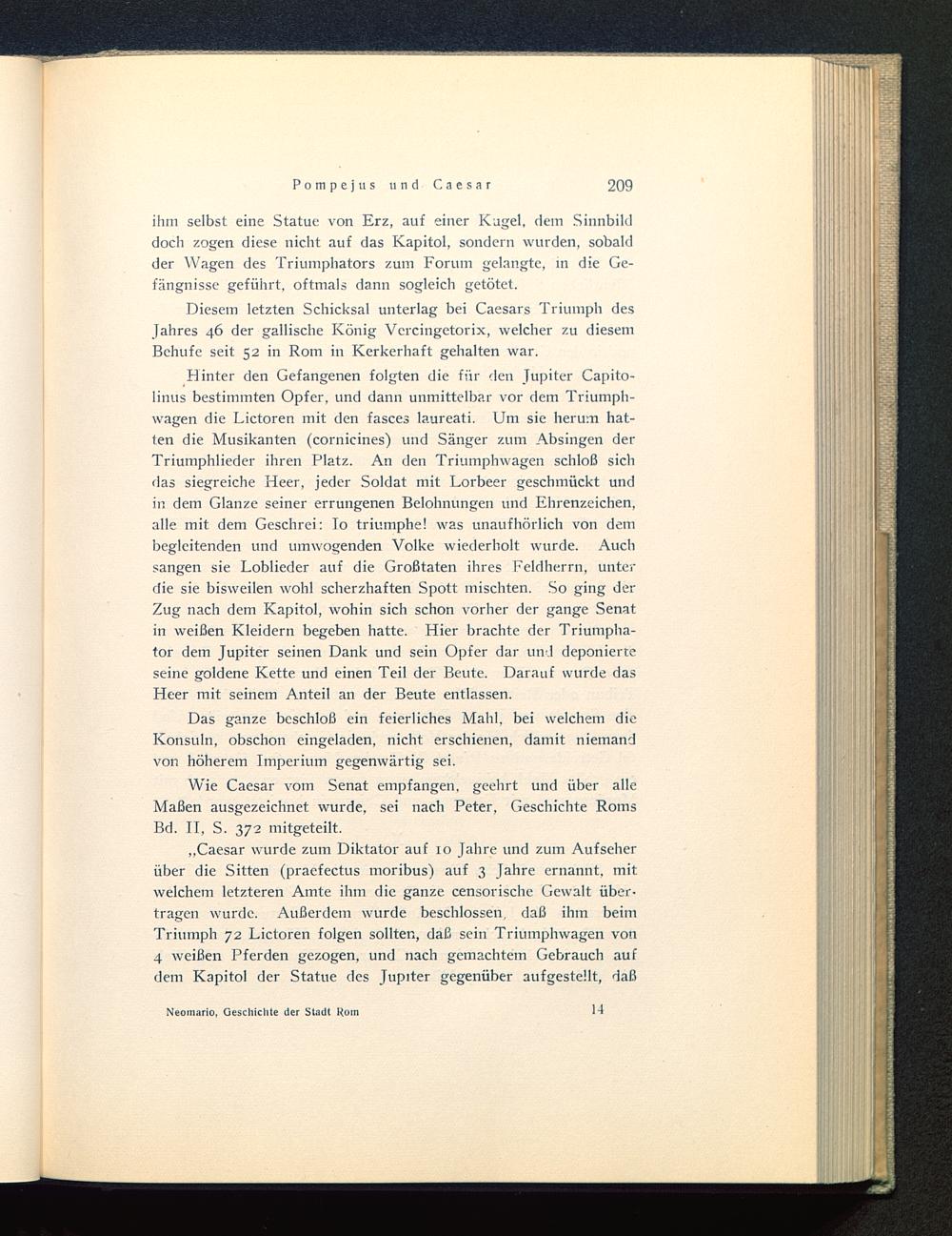Diesem letzten Schicksal unterlag bei Caesars Triumph desJahres 46 der gallische König Vercingetorix , welcher zu diesemBehufe seit 52 in Rom in Kerkerhaft gehalten war.