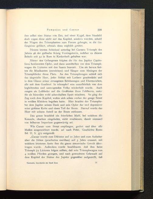 ihm selbst eine Statue von Erz, auf einer Kugel, dem Sinnbilddoch zogen diese nicht auf das Kapitol, sondern wurden, sobaldder Wagen des Triumphators zum Forum gelangte, in die Ge-fängnisse geführt, oftmals dann sogleich getötet.