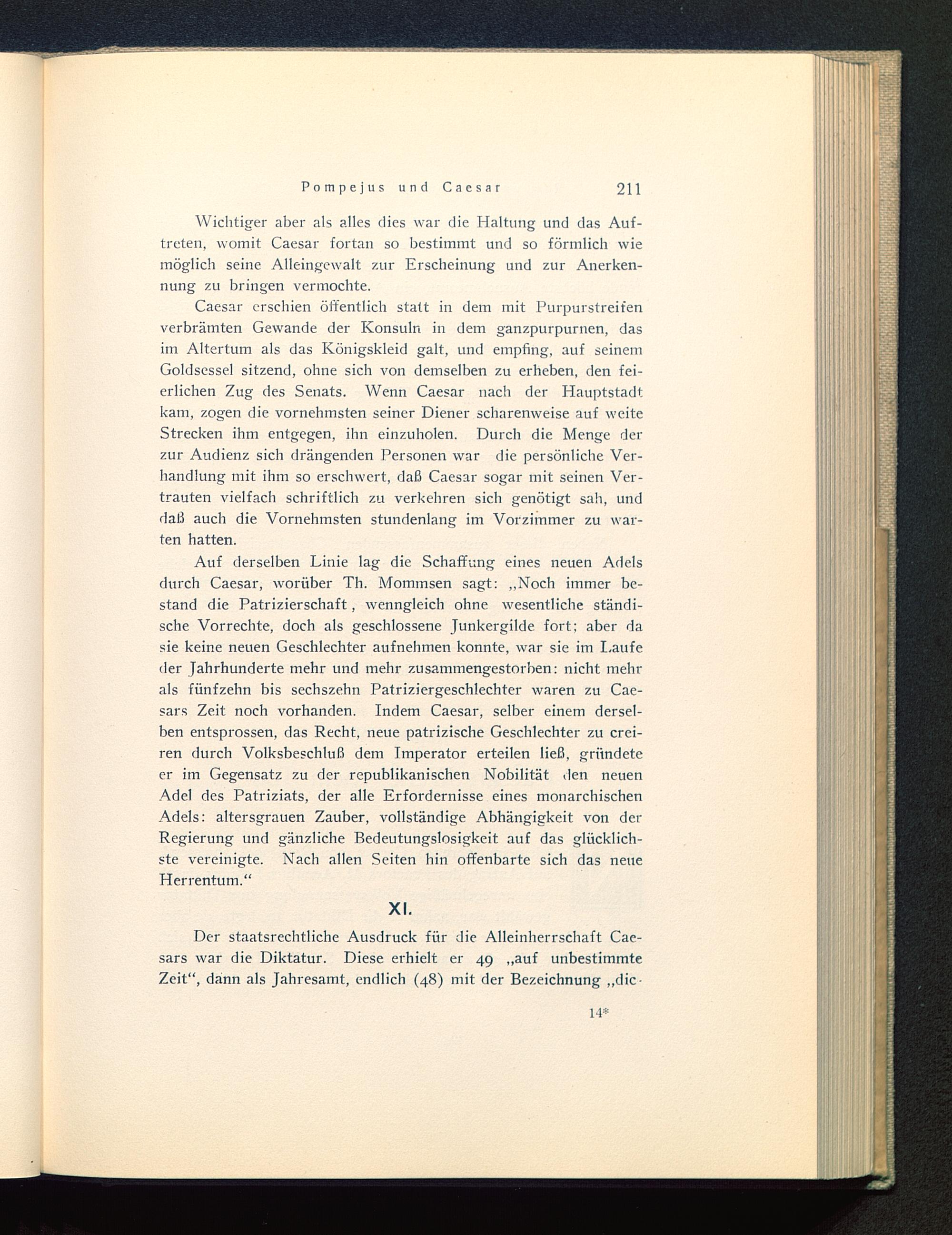 Wichtiger aber als alles (lies war die Haltung und das Auf-treten, womit Caesar fortan so bestimmt und so förmlich wiemöglich seine Alleingewalt zur Erscheinung und zur Anerken-nung zu bringen vermochte.