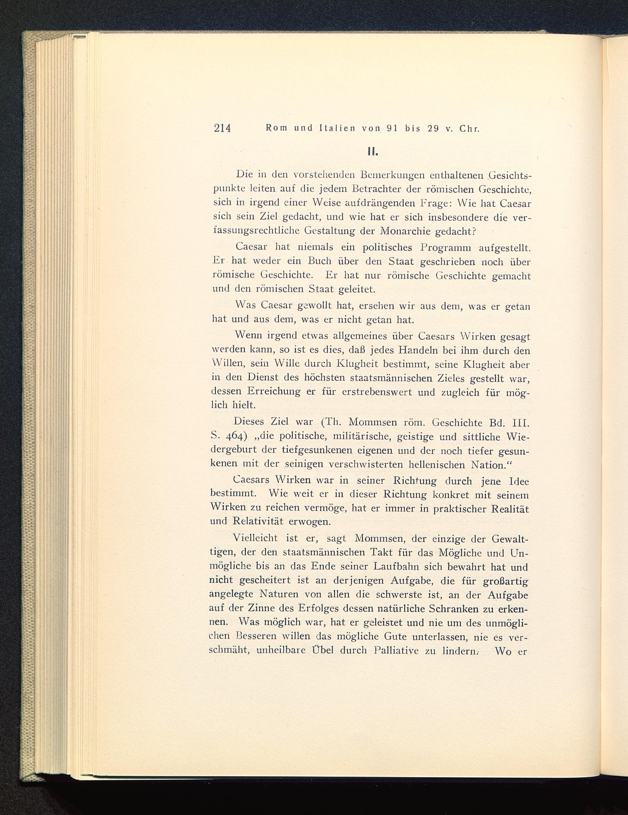Caesars Wirken war in seiner Richtung durch jene Ideebestimmt. Wie weit er in dieser Richtung konkret mit seinemWirken zu reichen vermöge, hat er immer in praktischer Realitätund Relativität erwogen.