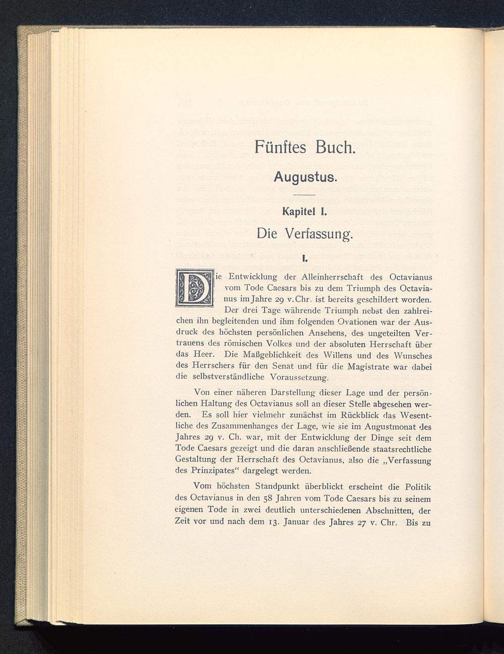Von einer näheren Darstellung dieser Lage und der persön-lichen Haltung des Octavianus soll an dieser Stelle abgesehen wer-den. Es soll hier vielmehr zunächst im Rückblick das Wesent-liche des Zusammenhanges der Lage, wie sie im Augustmonat desJahres 29 v. Ch. war, mit der Entwicklung der Dinge seit demTode Caesars gezeigt und die daran anschließende staatsrechtlicheGestaltung der Herrschaft des Octavianus , also die „Verfassungdes Prinzipates“ dargelegt werden.