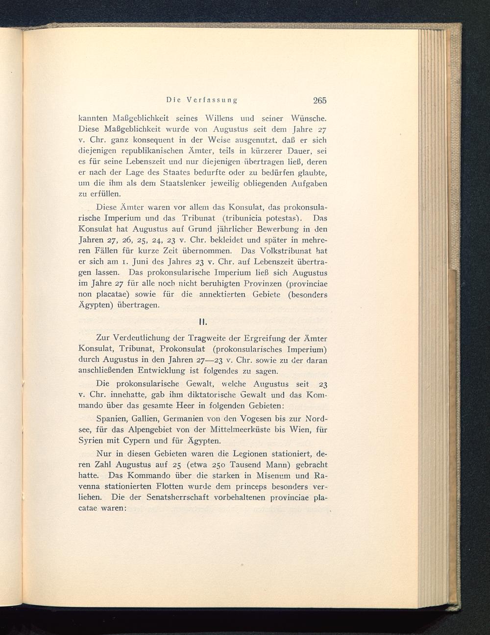 kannten Maßgeblichkeit seines Willens und seiner Wünsche.Diese Maßgeblichkeit wurde von Augustus seit dem Jahre 27v. Chr. ganz konsequent in der Weise ausgenutzt, daß er sichdiejenigen republikanischen Ämter, teils in kürzerer Dauer, seies für seine Lebenszeit und nur diejenigen übertragen ließ, derener nach der Lage des Staates bedurfte oder zu bedürfen glaubte,um die ihm als dem Staatslenker jeweilig obliegenden Aufgabenzu erfüllen.