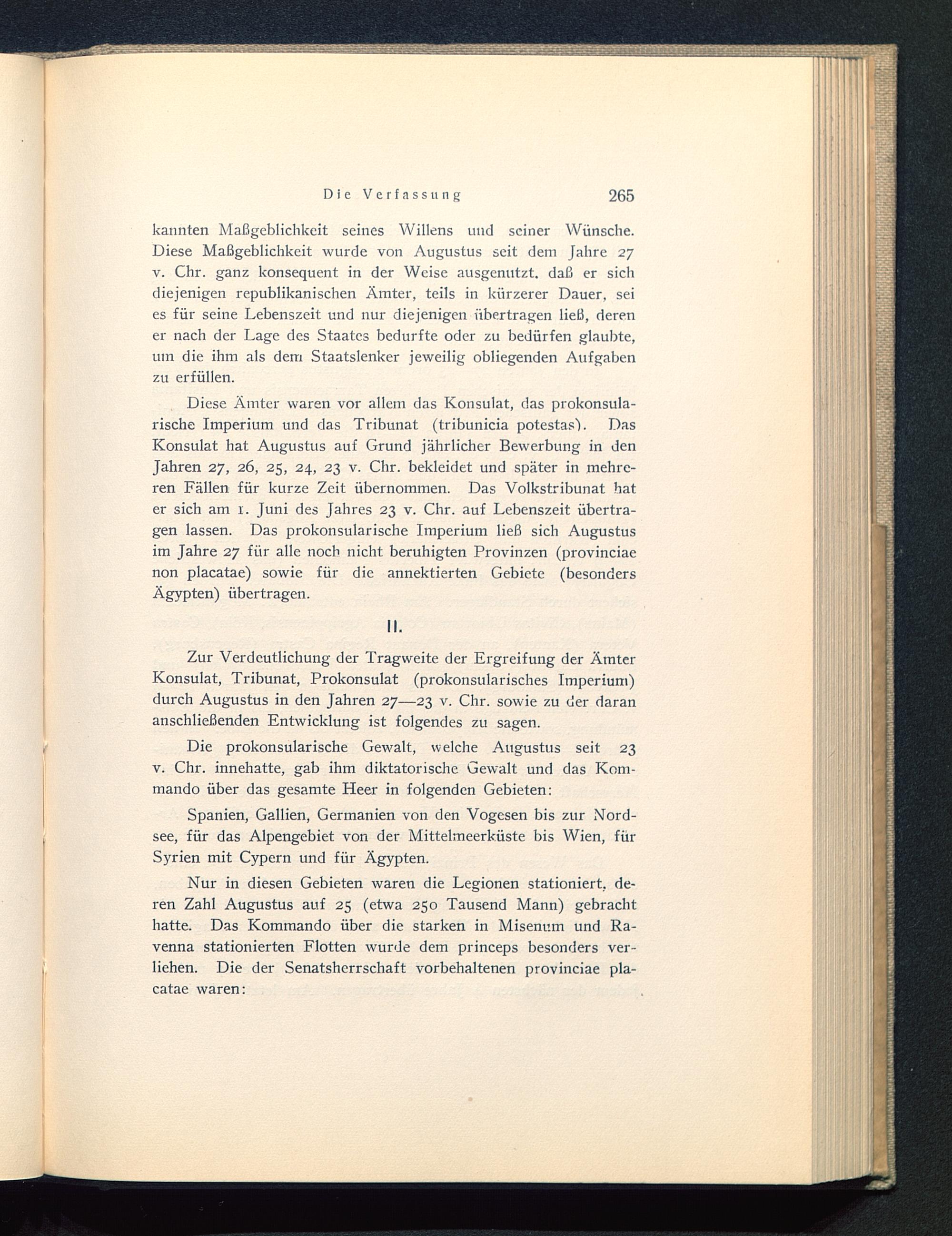 Nur in diesen Gebieten waren die Legionen stationiert, de-ren Zahl Augustus auf 25 (etwa 250 Tausend Mann) gebrachthatte. Das Kommando über die starken in Misenum und Ra-venna stationierten Flotten wurde dem princeps besonders ver-liehen. Die der Senatsherrschaft vorbehaltenen provinciae pla-catae waren: