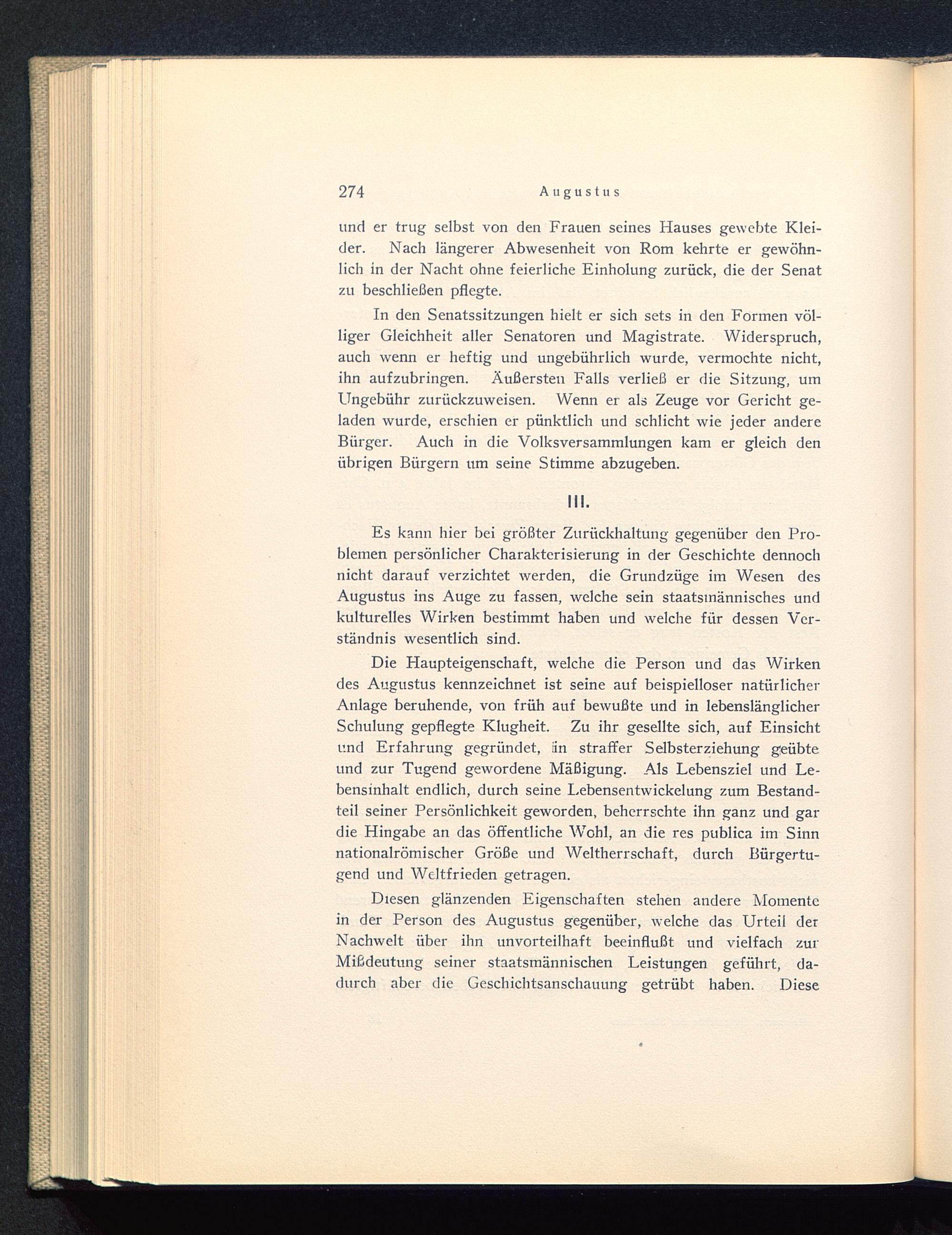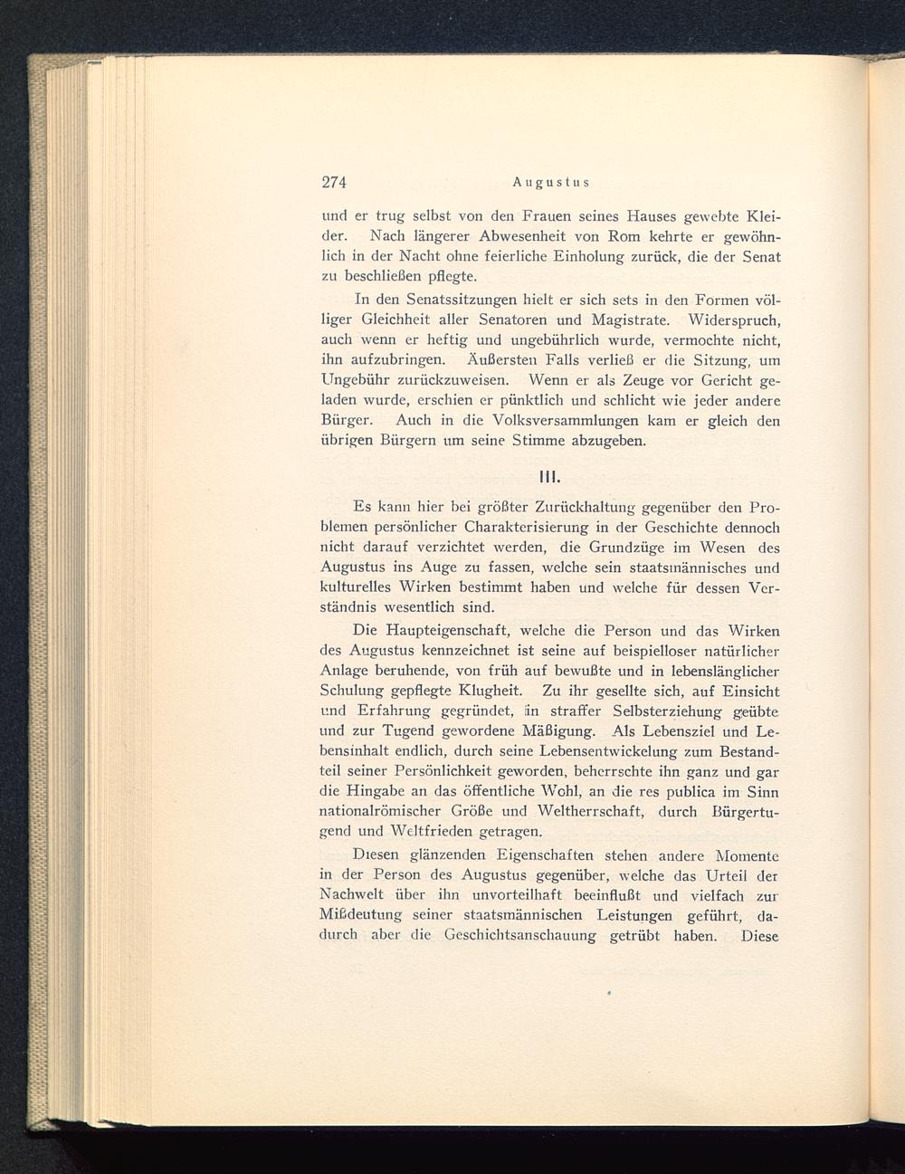 Es kann hier bei größter Zurückhaltung gegenüber den Pro-blemen persönlicher Charakterisierung in der Geschichte dennochnicht darauf verzichtet werden, die Grundzüge im Wesen desAugustus ins Auge zu fassen, welche sein staatsinännisches undkulturelles Wirken bestimmt haben und welche für dessen Ver-ständnis wesentlich sind.