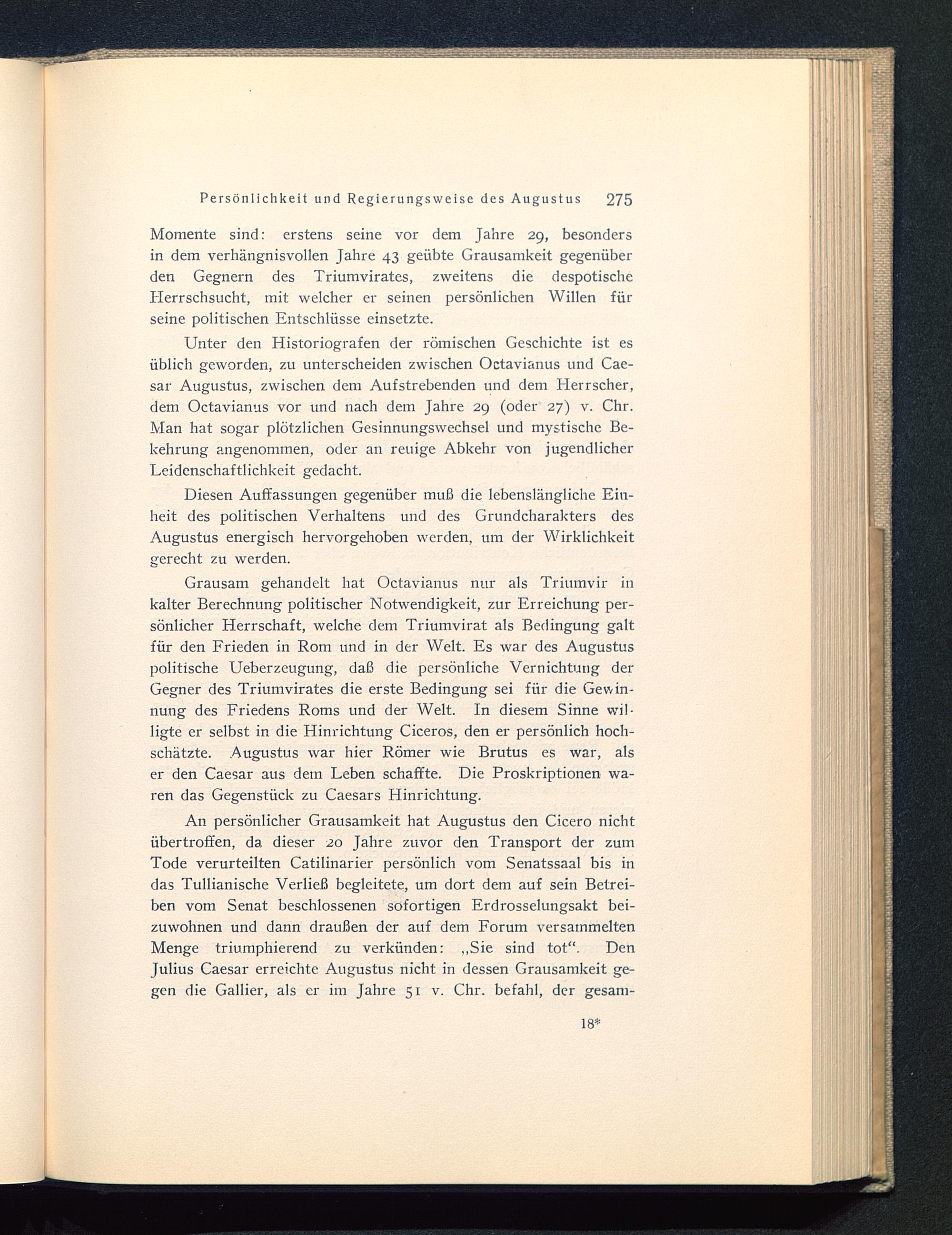 Momente sind: erstens seine vor dem Jahre 29, besondersin dem verhängnisvollen Jahre 43 geübte Grausamkeit gegenüberden Gegnern des Triumvirates, zweitens die despotischeHerrschsucht, mit welcher er seinen persönlichen Willen fürseine politischen Entschlüsse einsetzte.