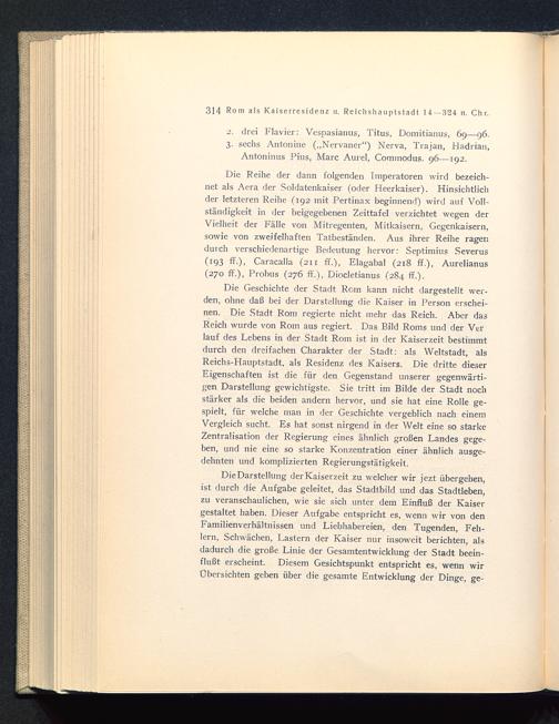 Die Darstellung derKaiserzeit zu welcher wir jezt übergehen,ist durch die Aufgabe geleitet, das Stadtbild und das Stadtleben,zu veranschaulichen, wie sie sich unter dem Einfluß der Kaisergestaltet haben. Dieser Aufgabe entspricht es, wenn wir von denFamilienverhältnissen und Liebhabereien, den Tugenden, Feh-lern, Schwächen, Lastern der Kaiser nur insoweit berichten, alsdadurch die große Linie der Gesamtentwicklung der Stadt beein-flußt erscheint. Diesem Gesichtspunkt entspricht es, wenn wirÜbersichten geben über die gesamte Entwicklung der Dinge, ge-