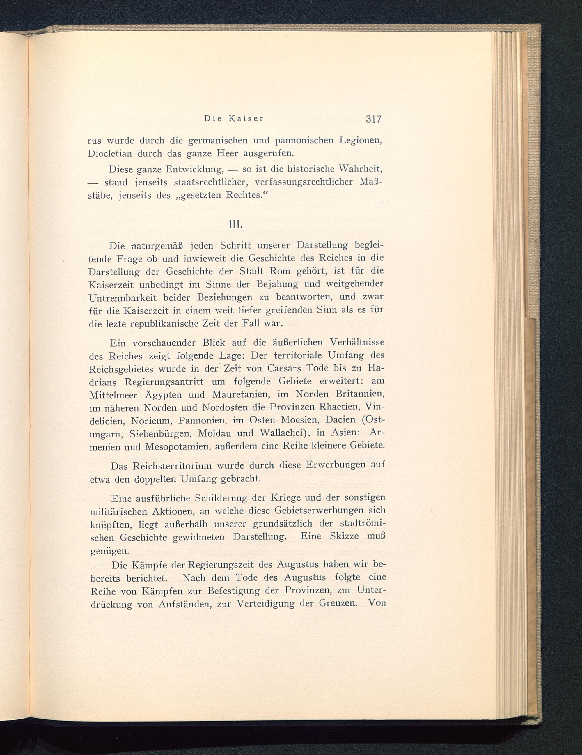 Die naturgemäß jeden Schritt unserer Darstellung beglei-tende Frage ob und inwieweit die Geschichte des Reiches in dieDarstellung der Geschichte der Stadt Rom gehört, ist für dieKaiserzeit unbedingt im Sinne der Bejahung und weitgehenderUntrennbarkeit beider Beziehungen zu beantworten, und zwarfür die Kaiser zeit in einem weit tiefer greifenden Sinn als es füidie lezte republikanische Zeit der Fall war.