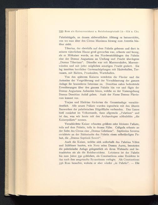 Auch die Kaiser, welche sich außerhalb des Palatins Villenund Schlösser bauten, wie Nero seine Domus Aurea , benutztendie palatinische Anlage gelegentlich als ihren Wohnsitz und be-trachteten sie als die Reichsresidenz. Letzteres ist der Palatin bis zum Jahre 330 geblieben, als Constantinus seine Residenz indas nach ihm umgetaufte Byzantinum verlegte. Als Constantinus356 Rom besuchte, wohnte er aber wieder „in Palatio“. — Die