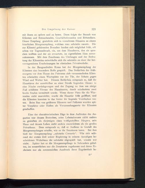 Eine der charakteristischen Züge in dem Auftreten des Au-gustus war dessen Bestreben, seine Lebensformen nicht anderszu gestalten als diejenigen eines wohlgestellten Bürgers, seinHaus und dessen Leben nicht anders eiuzurichten als ein großesPrivathaus. Dem entsprach es, daß er Audienz in Gestalt desMorgenempfanges erteilte, wie es die Senatoren taten. Bei ihmhieß der Morgenempfang „salutatio Caesaris“. Wie sich wäh-rend der ersten Zeit seiner Regierung in seinem damaligen be-scheidenen Wohnhaus die salutatio abgespielt hat, wissen wirnicht. Später hat er die Morgenempfänge in Schranken gehal-ten, im wesentlichen nur die Senatoren zugelassen und deren Er-cheinen nur als zeremoniellen Ausdruck ihrer Ergebenheit be-