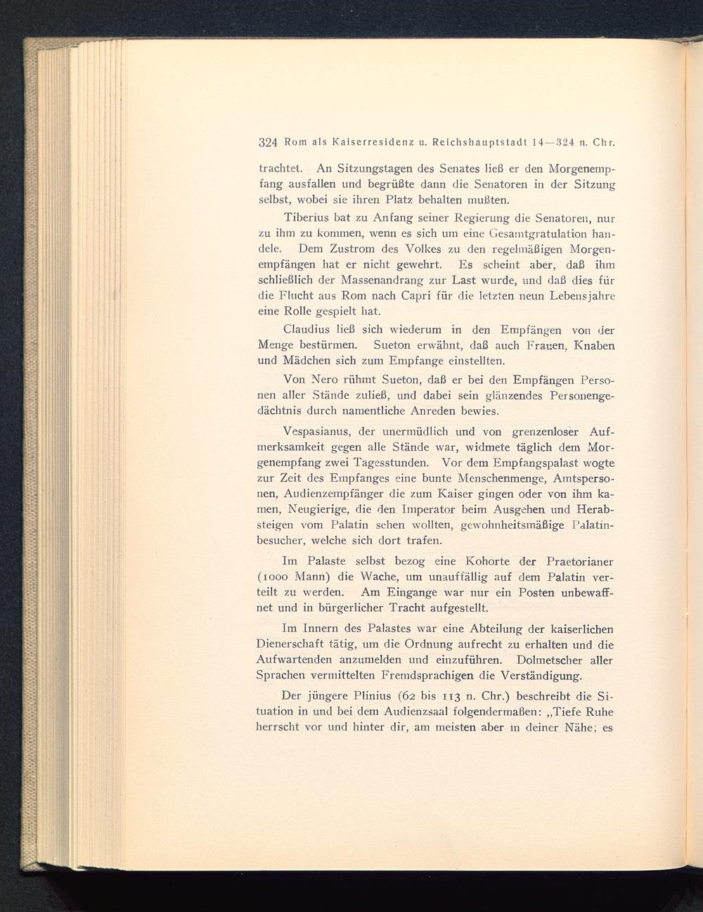 Der jüngere Plinius (62 bis 113 n. Chr.) beschreibt die Si-tuation in und bei dem Audienzsaal folgendermaßen: „Tiefe Ruheherrscht vor und hinter dir, am meisten aber in deiner Nähe; es