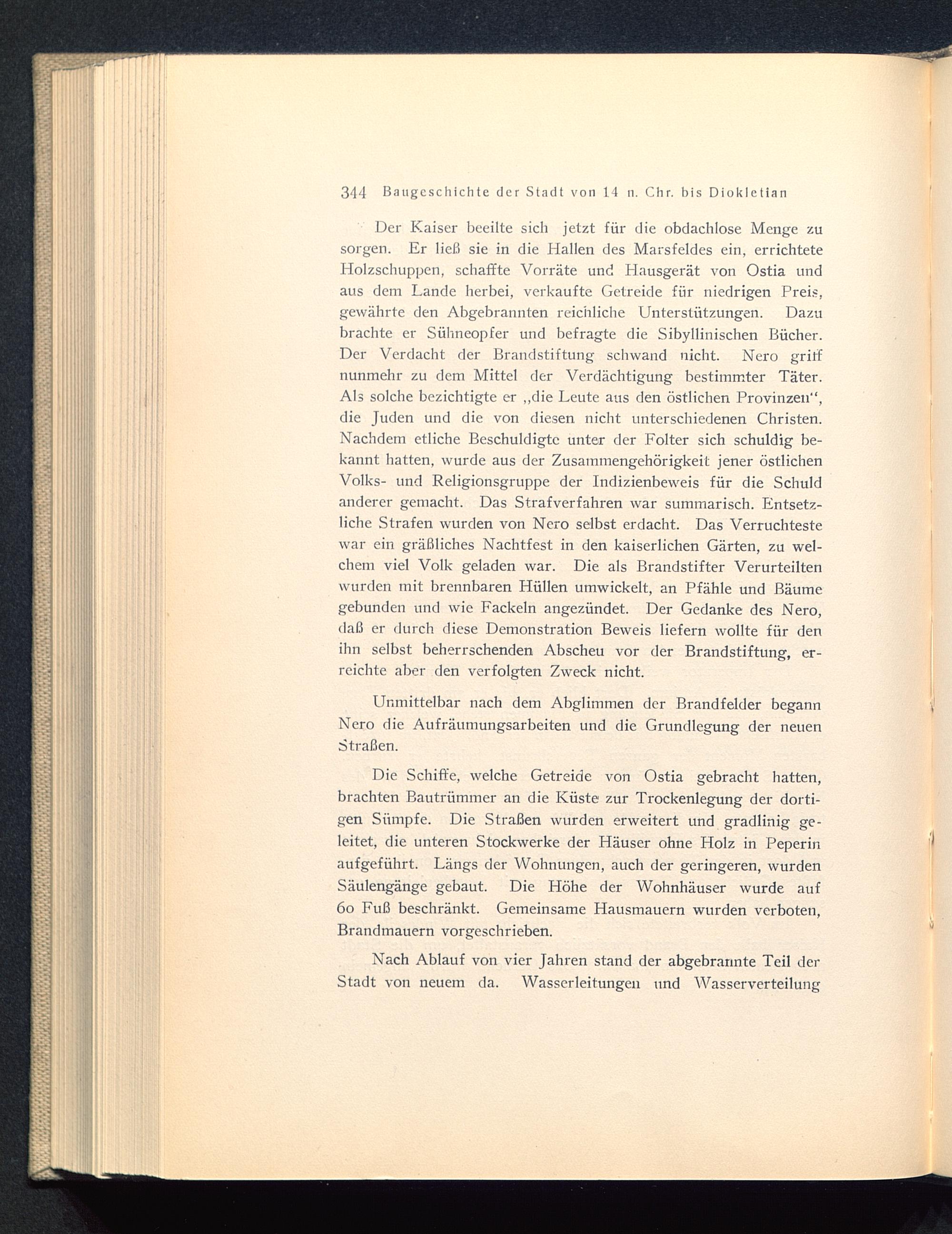Die Schiffe, welche Getreide von Ostia gebracht hatten,brachten Bautrümmer an die Küste zur Trockenlegung der dorti-gen Sümpfe. Die Straßen wurden erweitert und gradlinig ge-leitet, die unteren Stockwerke der Häuser ohne Holz in Peperinaufgeführt. Längs der Wohnungen, auch der geringeren, wurdenSäulengänge gebaut. Die Höhe der Wohnhäuser wurde auf60 Fuß beschränkt. Gemeinsame Hausmauern wurden verboten,Brandmauern vorgeschrieben.