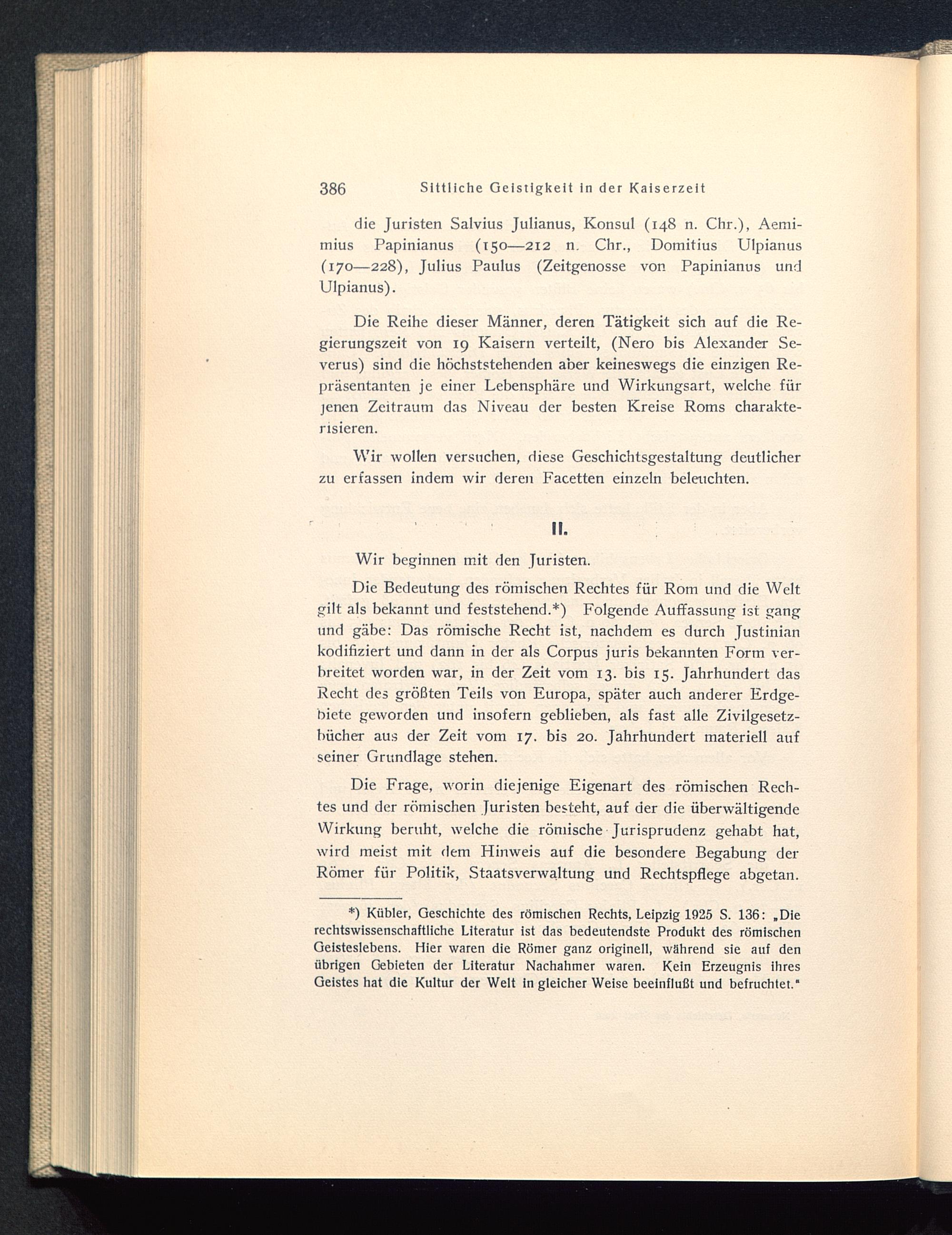 *) Kübler, Geschichte des römischen Rechts, Leipzig 1925 S. 136: .Dierechtswissenschaftliche Literatur ist das bedeutendste Produkt des römischenGeisteslebens. Hier waren die Römer ganz originell, während sie auf denübrigen Gebieten der Literatur Nachahmer waren. Kein Erzeugnis ihresGeistes hat die Kultur der Welt in gleicher Weise beeinflußt und befruchtet.“