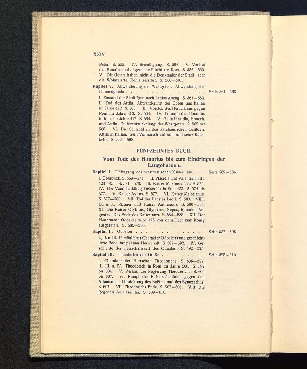 II. Tod des Attila. Abwanderung der Goten aus Italien im Jahre 412. S. 563. III. Vorstoß des Heraclianus gegenRom im Jahre 413. S. 564. IV. Triumph des Honorius in Rom im Jahre 417. S. 564. V. Galla Placidia , Honoriaund Attila. Kulturentwickelung der Westgoten. S. 565 bis566. VI. Die Schlacht in den katalaunischen Gefilden.
