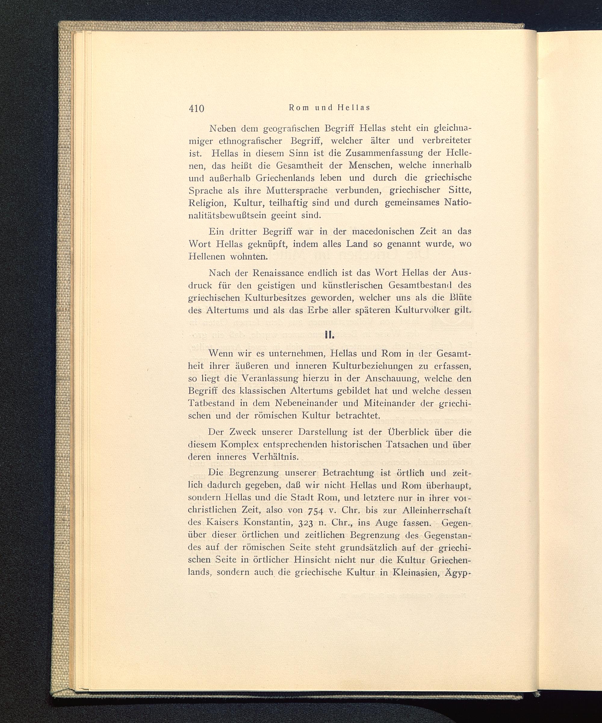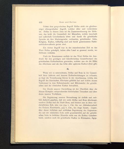 Die Begrenzung unserer Betrachtung ist örtlich und zeit-lich dadurch gegeben, daß wir nicht Hellas und Rom überhaupt,sondern Hellas und die Stadt Rom , und letztere nur in ihrer vor-christlichen Zeit, also von 754 v. Chr. bis zur Alleinherrschaftdes Kaisers Konstantin, 323 n. Chr., ins Auge fassen. Gegen-über dieser örtlichen und zeitlichen Begrenzung des Gegenstan-des auf der römischen Seite steht grundsätzlich auf der griechi-schen Seite in örtlicher Hinsicht nicht nur die Kultur Griechen-lands, sondern auch die griechische Kultur in Kleinasien, Ägyp -