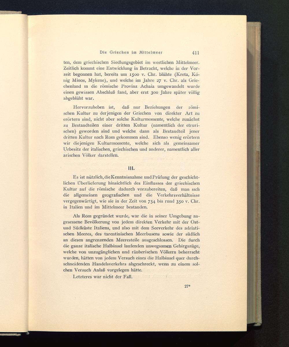 Es ist nützlich, dieKenntnisnahme und Prüfung der geschicht-lichen Überlieferung hinsichtlich des Einflusses der griechischenKultur auf die römische dadurch vorzubereiten, daß man sichdie allgemeinen geografischen und die Verkehrsverhältnissevergegenwärtigt, wie sie in der Zeit von 754 bis rund 350 v. Chr.in Italien und im Mittelmeer bestanden.