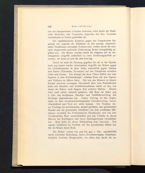 Die republikanische Reaktion gegen das Tarquinische Re-giment war zugleich die Rückkehr zu den starren, altpatrizi-schen Traditionen nationaler Exklusivität, welche durch die nun-mehr eingetretene politische Einkreisung Roms zwangsläufig ge-geben war. Die Römer wurden durch die ringsum auf sie ein-drängenden Angriffe schließlich zu einer Eroberungspolitik ge-trieben, die ihnen an und für sich fern lag.