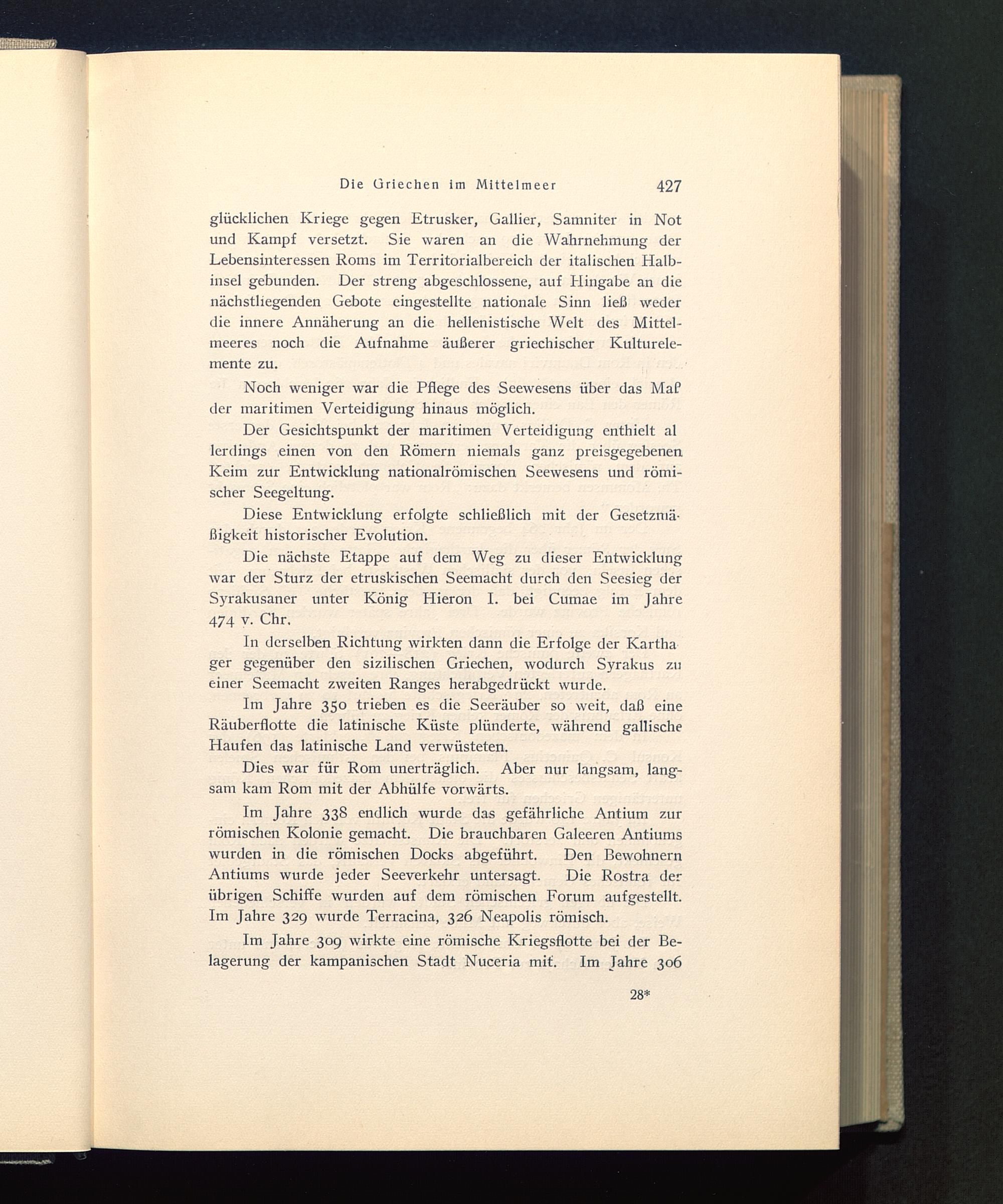 Der Gesichtspunkt der maritimen Verteidigung enthielt allerdings einen von den Römern niemals ganz preisgegebenenKeim zur Entwicklung nationalrömischen Seewesens und römi-scher Seegeltung.