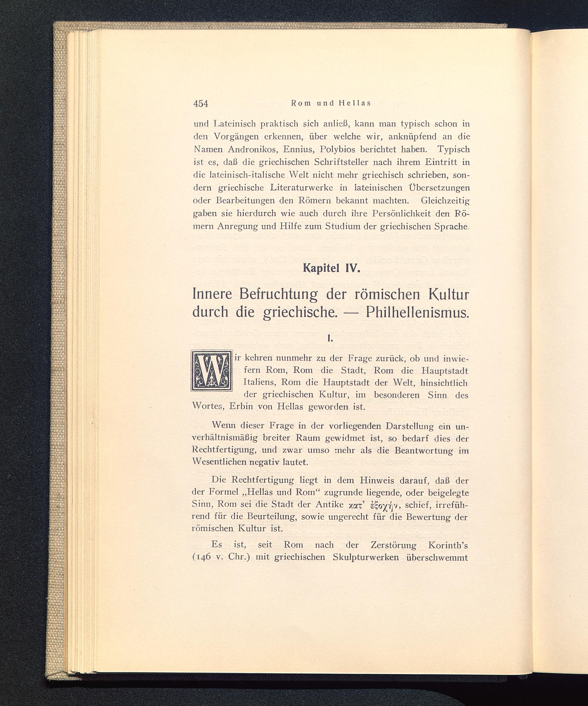 ir kehren nunmehr zu der Frage zurück, ob und inwie-fern Rom, Rom die Stadt, Rom die HauptstadtItaliens, Rom die Hauptstadt der Welt, hinsichtlichder griechischen Kultur, im besonderen Sinn desWortes, Erbin von Hellas geworden ist.