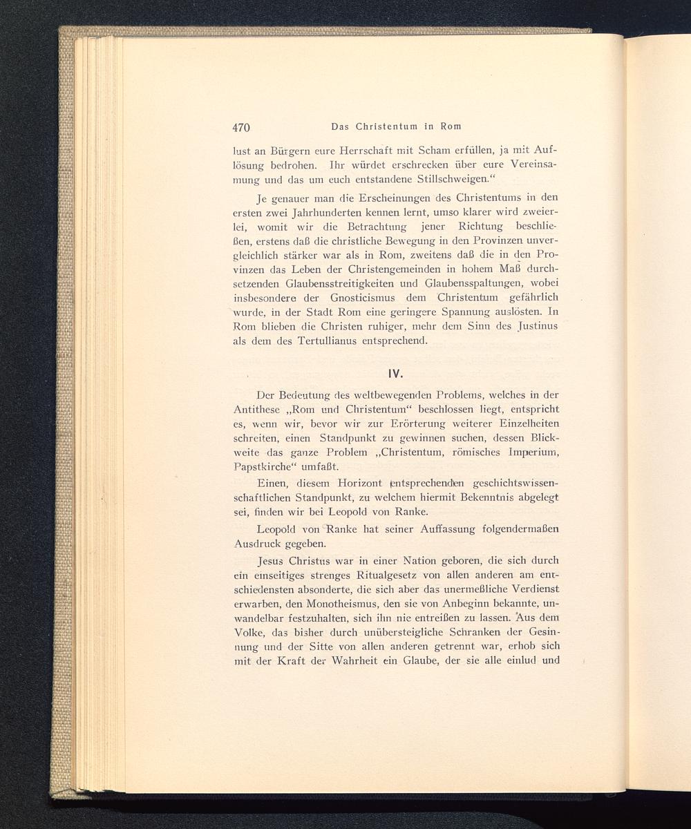 Der Bedeutung des weltbewegenden Problems, welches in derAntithese „Rom und Christentum“ beschlossen liegt, entsprichtes, wenn wir, bevor wir zur Erörterung weiterer Einzelheitenschreiten, einen Standpunkt zu gewinnen suchen, dessen Blick-weite das ganze Problem „Christentum, römisches Imperium,Papstkirche“ umfaßt.