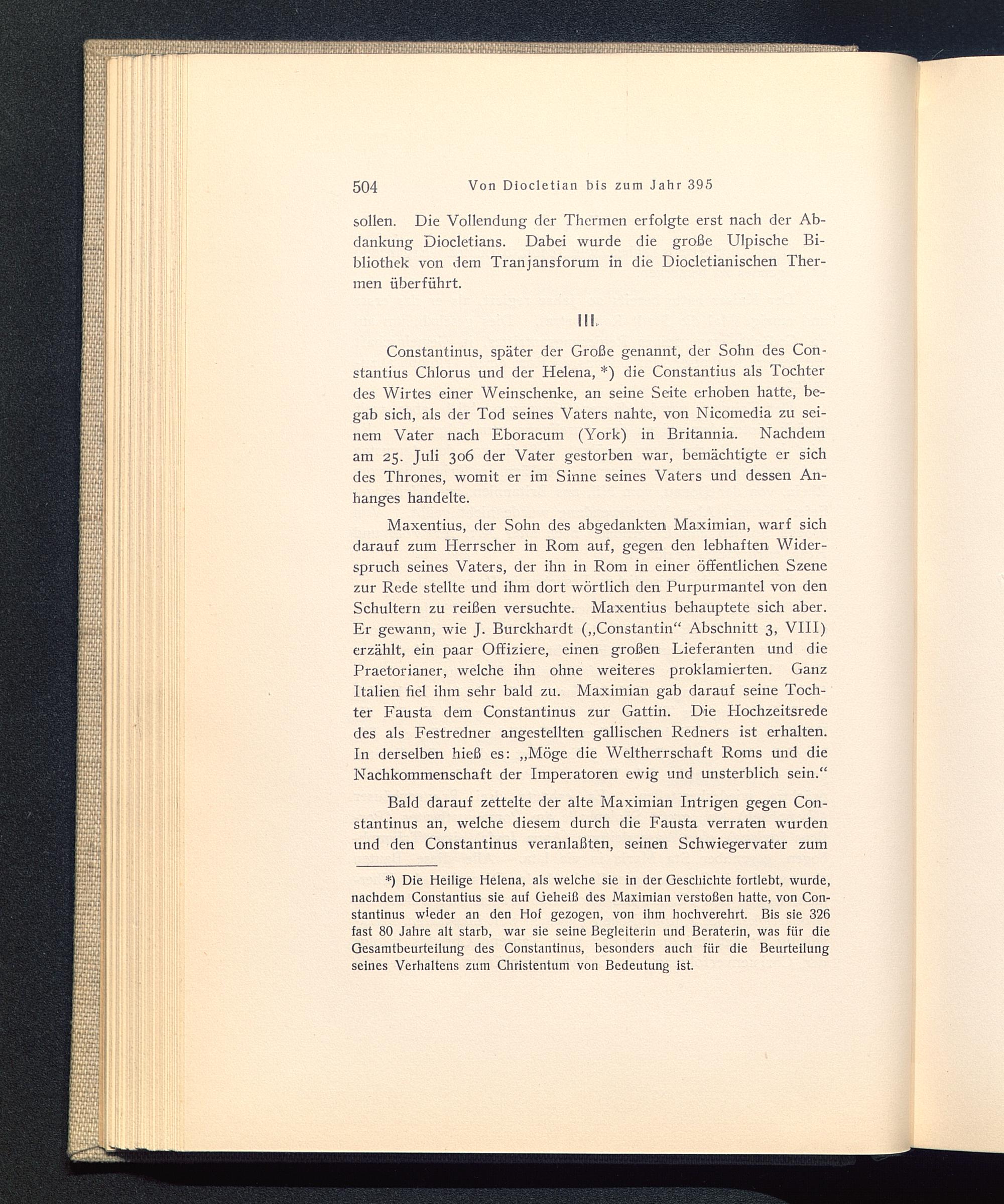 *) Die Heilige Helena, als welche sie in der Geschichte fortlebt, wurde,nachdem Constantius sie auf Geheiß des Maximian verstoßen hatte, von Con-stantinus w'eder an den Hof gezogen, von ihm hochverehrt. Bis sie 326fast 80 Jahre alt starb, war sie seine Begleiterin und Beraterin, was für dieGesamtbeurteilung des Constantinus, besonders auch für die Beurteilungseines Verhaltens zum Christentum von Bedeutung ist.