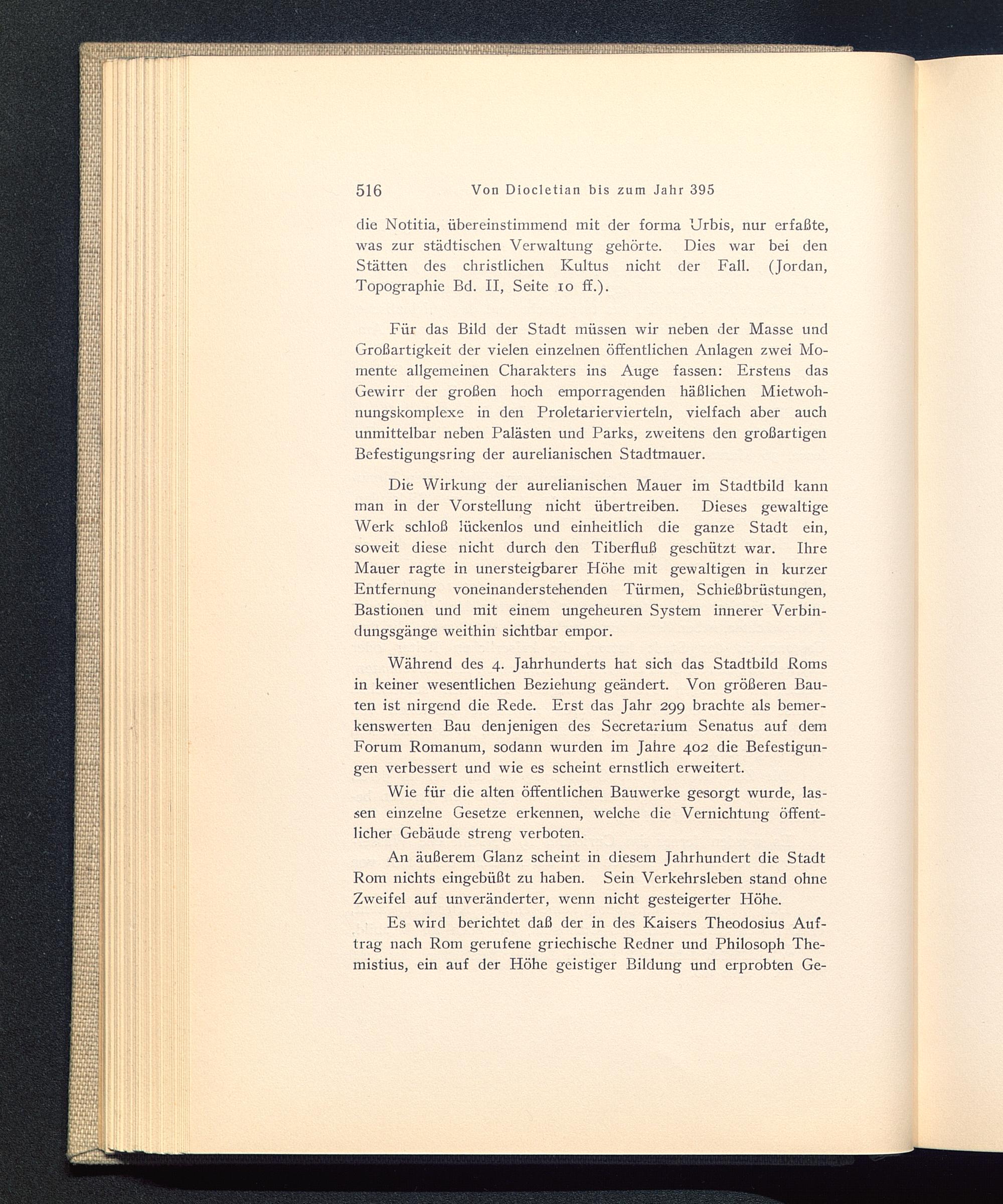 Während des 4. Jahrhunderts hat sich das Stadtbild Roms in keiner wesentlichen Beziehung geändert. Von größeren Bau-ten ist nirgend die Rede. Erst das Jahr 299 brachte als bemer-kenswerten Bau denjenigen des Secretarium Senatus auf demForum Romanum, sodann wurden im Jahre 402 die Befestigun-gen verbessert und wie es scheint ernstlich erweitert.