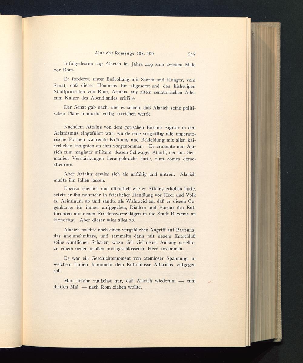 Er forderte, unter Bedrohung mit Sturm und Hunger, vomSenat, daß dieser Honorius für abgesetzt und den bisherigenStadtpräfecten von Rom , Attalus, aus altem senatorischen Adel,zum Kaiser des Abendlandes erkläre.