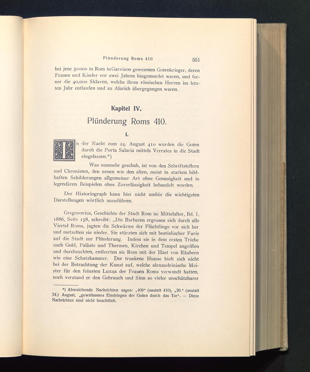 *) Abweichende Nachrichten sagen: „409“ (anstatt 410), „26.“ (anstatt24.) August, „gewaltsames Eindringen der Goten durch das Tor“. — DieseNachrichten sind nicht beachtlich.