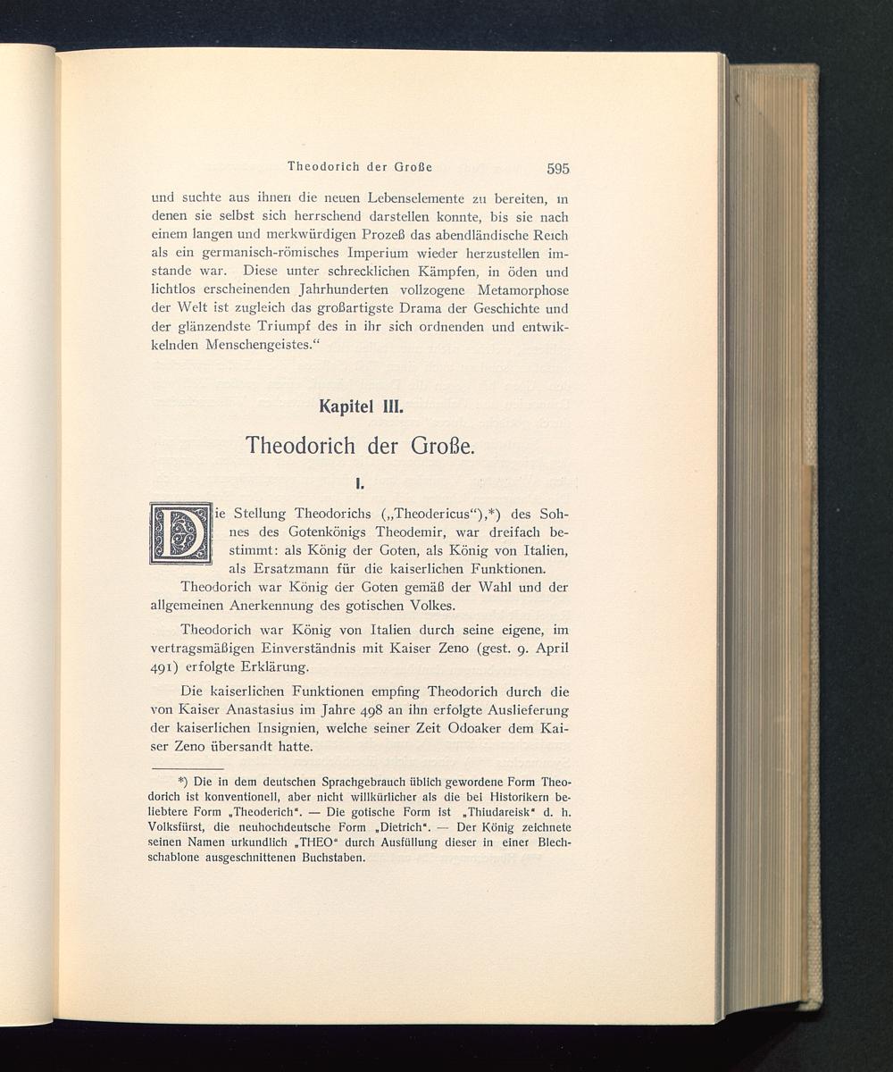 *) Die in dem deutschen Sprachgebrauch üblich gewordene Form Theo-dorich ist konventionell, aber nicht willkürlicher als die bei Historikern be-liebtere Form „Theoderich “. — Die gotische Form ist „Thiudareisk“ d. h.Volksfürst, die neuhochdeutsche Form „Dietrich“. — Der König zeichneteseinen Namen urkundlich „THEO“ durch Ausfüllung dieser in einer Blech-schablone ausgeschnittenen Buchstaben.