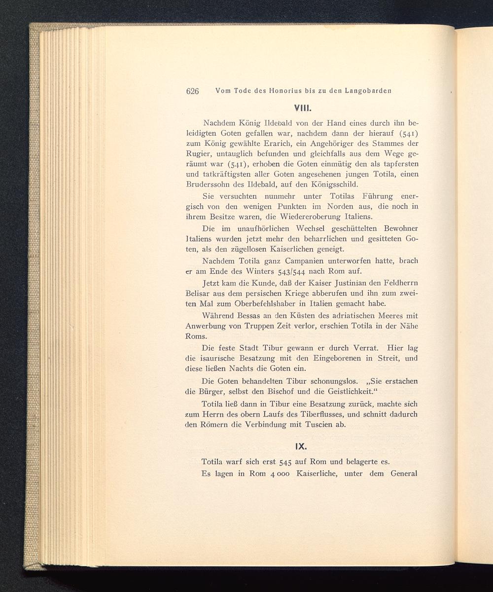 Nachdem König Ildebald von der Hand eines durch ihn be-leidigten Goten gefallen war, nachdem dann der hierauf (541)zum König gewählte Erarich, ein Angehöriger des Stammes derRugier, untauglich befunden und gleichfalls aus dem Wege ge-räumt war (541), erhoben die Goten einmütig den als tapferstenund tatkräftigsten aller Goten angesehenen jungen Totila, einenBruderssohn des Ildebald, auf den Königsschild.