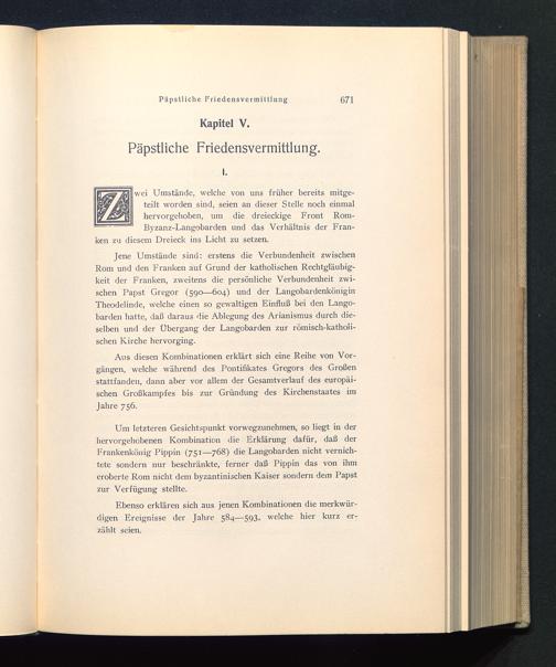 Aus diesen Kombinationen erklärt sich eine Reihe von Vor-gängen, welche während des Pontifikates Gregors des Großenstattfanden, dann aber vor allem der Gesamtverlauf des europäi-schen Großkampfes bis zur Gründung des Kirchenstaates imJahre 756.