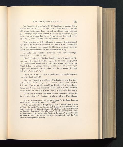 Des Honorius bis 638 währende gesegnete Regierungszeitwar durch die während derselben der Stadt Rom beschiedeneRuhe ausgezeichnet, sowie durch des Honorius Tätigkeit auf demGebiet des Kirchenbaus und der Kirchenausstattung.