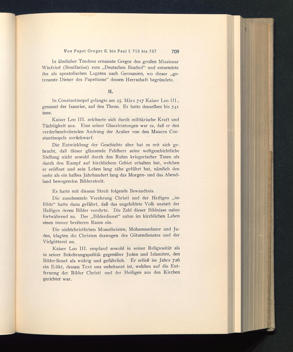 Kaiser Leo III. empfand sowohl in seiner Religiosität alsin seiner Bekehrungspolitik gegenüber Juden und Islamiten, denBilderdienst als widrig und gefährlich. Er erließ im Jahre 726ein Edikt, dessen Text uns unbekannt ist, welches auf die Ent-fernung der Bilder Christi und der Heiligen aus den Kirchengerichtet war.