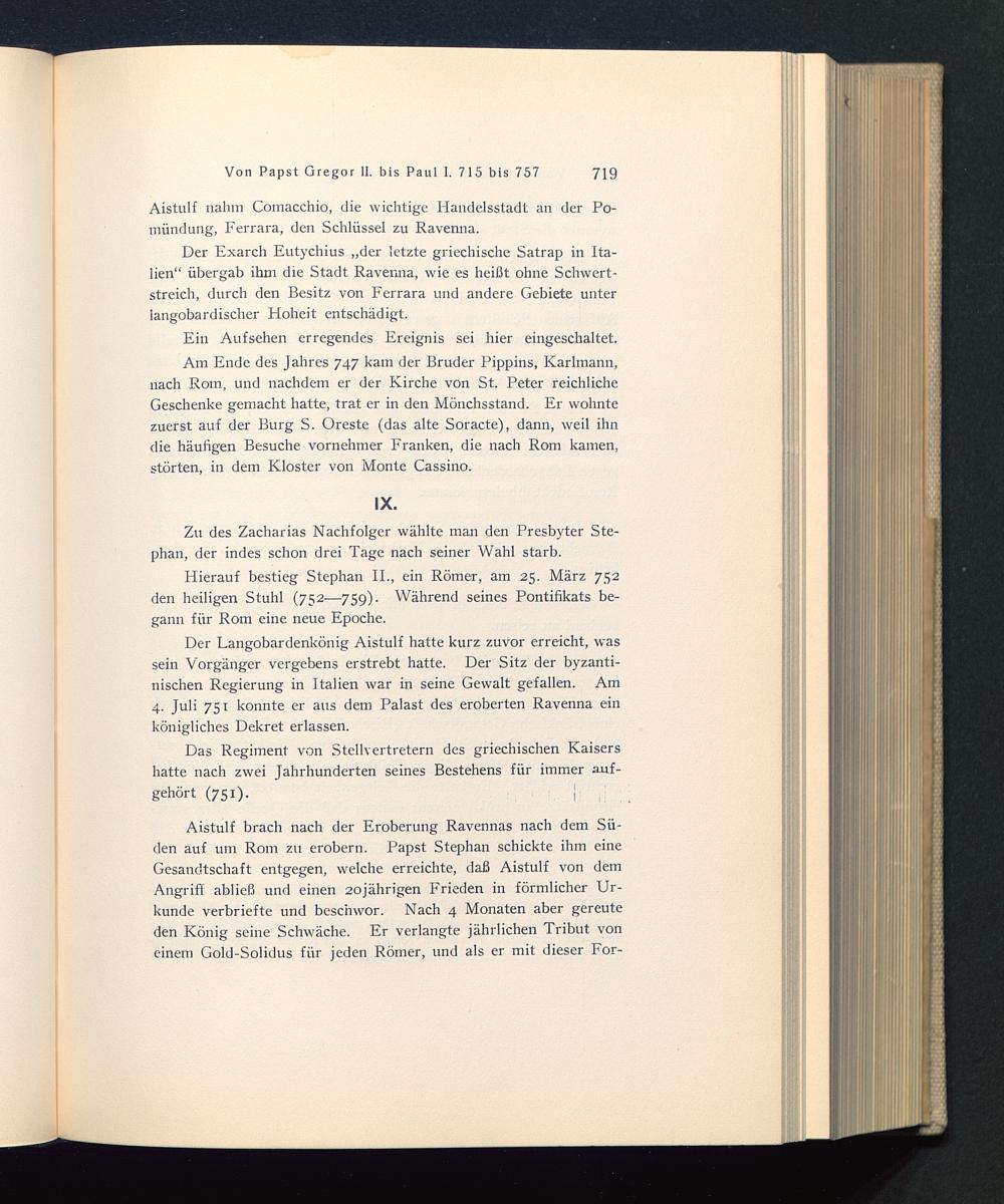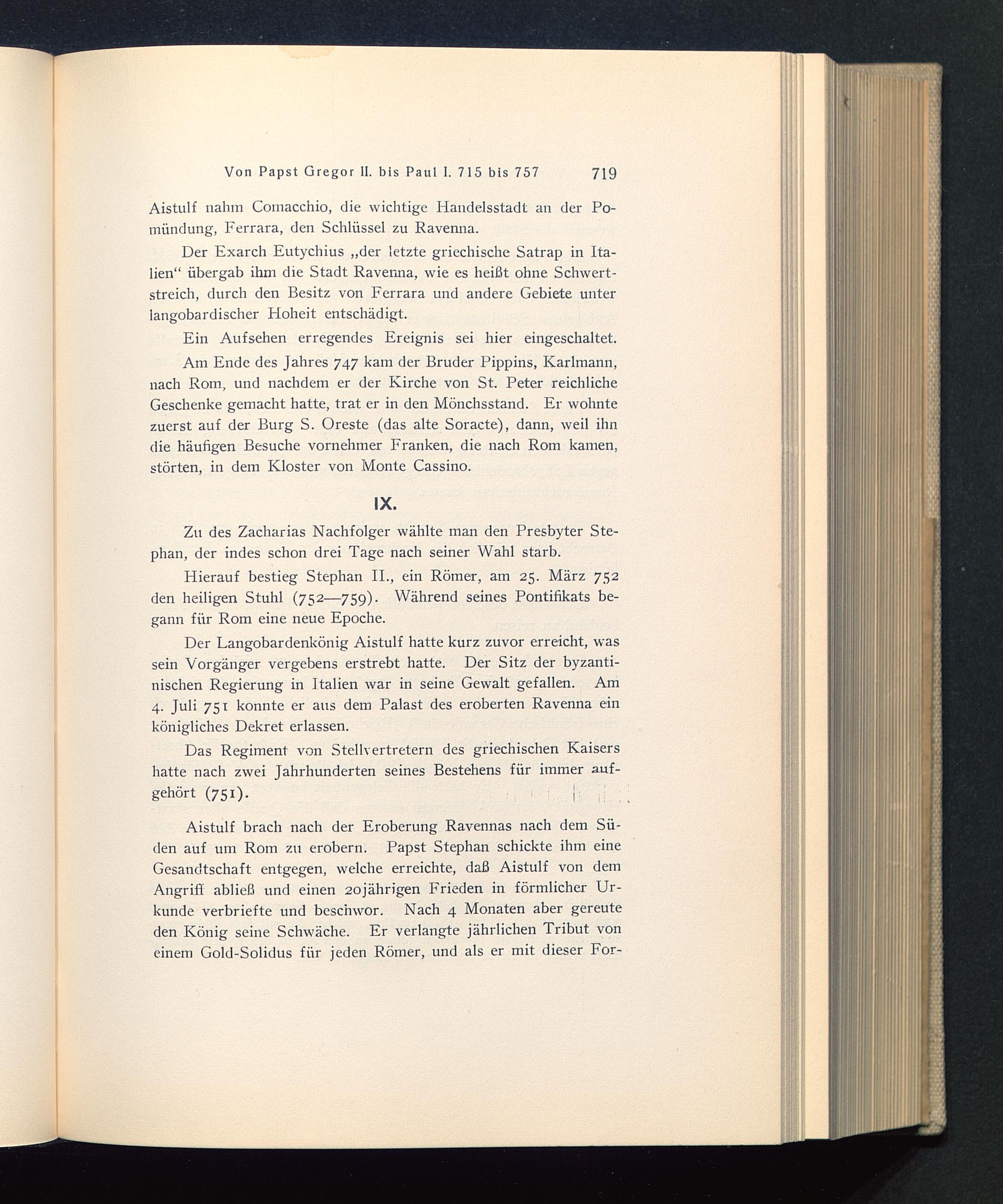 Hierauf bestieg Stephan II. , ein Römer, am 25. März 752den heiligen Stuhl (752-—759). Während seines Pontifikats be-gann für Rom eine neue Epoche.