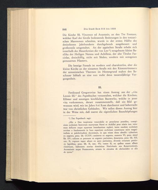 Ferdinand Gregorovius hat einen Auszug aus der „vitaLeonis III.“ des Papstbuches veranstaltet, welcher die Kirchen,Klöster und sonstigen kirchlichen Bauwerke, welche in jenervita Vorkommen, derart zusammenstellt, daß ein Bild ge-wonnen wird, wie im Jahre 816 Rom durchsetzt und beherrschtwar von christlichen Gebäuden. Wir teilen diesen Auszug hierin der Weise mit, daß zuerst die eigentlichen Bauschöpfungen