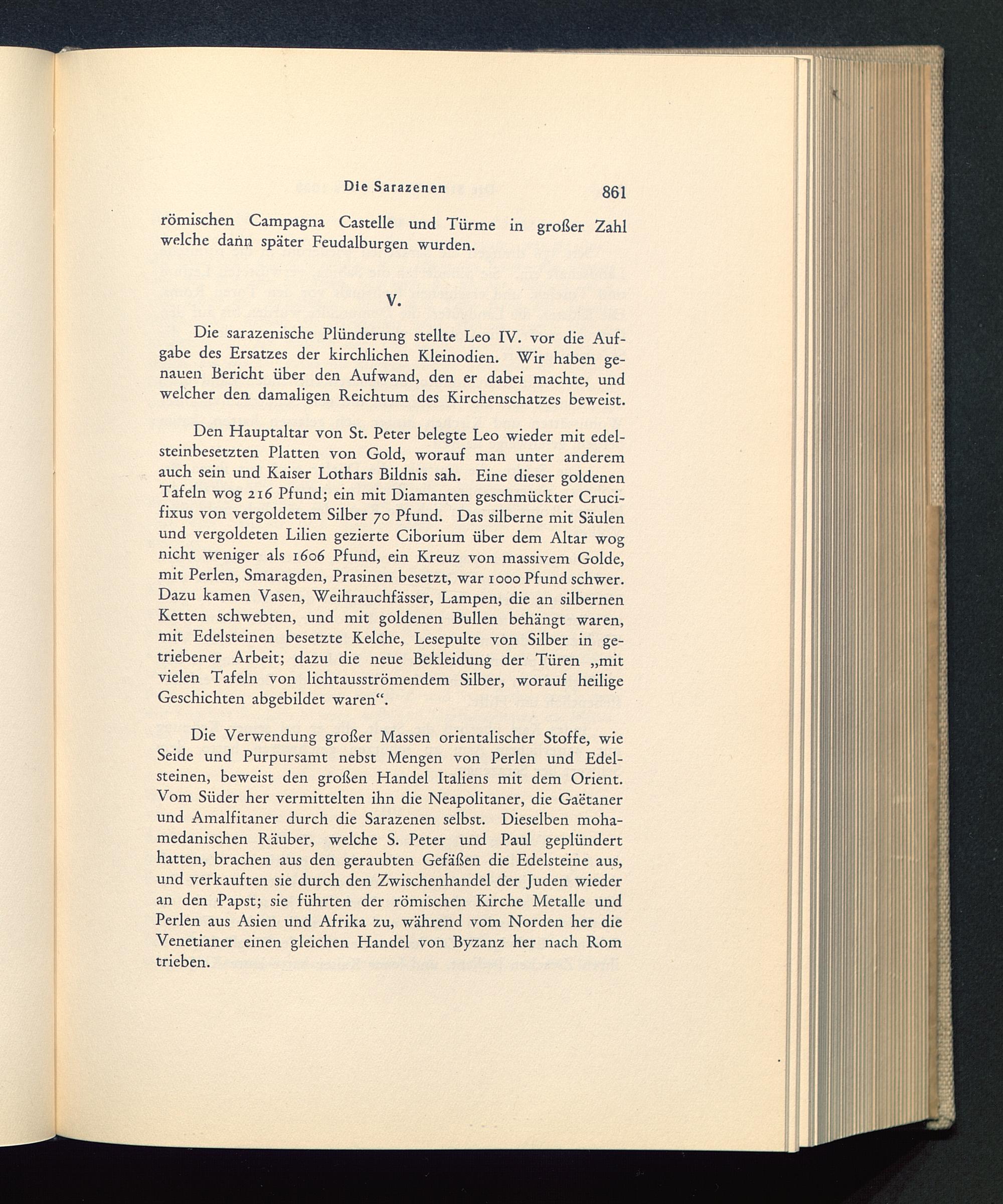 Die sarazenische Plünderung stellte Leo IV. vor die Auf-gabe des Ersatzes der kirchlichen Kleinodien. Wir haben ge-nauen Bericht über den Aufwand, den er dabei machte, undwelcher den damaligen Reichtum des Kirchenschatzes beweist.