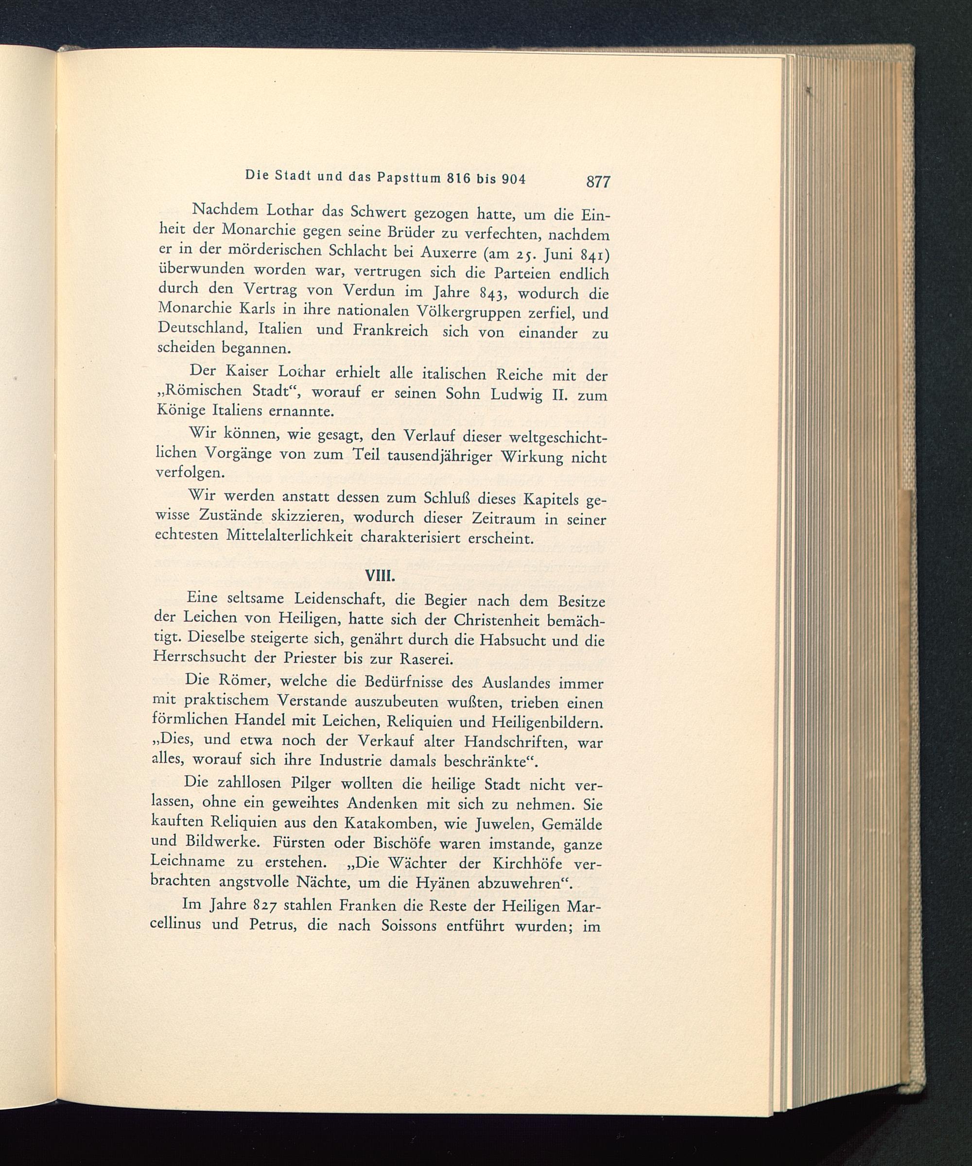 Nachdem Lothar das Schwert gezogen hatte, um die Ein-heit der Monarchie gegen seine Brüder zu verfechten, nachdemer in der mörderischen Schlacht bei Auxerre (am 2j. Juni 841)überwunden worden war, vertrugen sich die Parteien endlichdurch den Vertrag von Verdun im Jahre 843, wodurch dieMonarchie Karls in ihre nationalen Völkergruppen zerfiel, undDeutschland, Italien und Frankreich sich von einander zuscheiden begannen.
