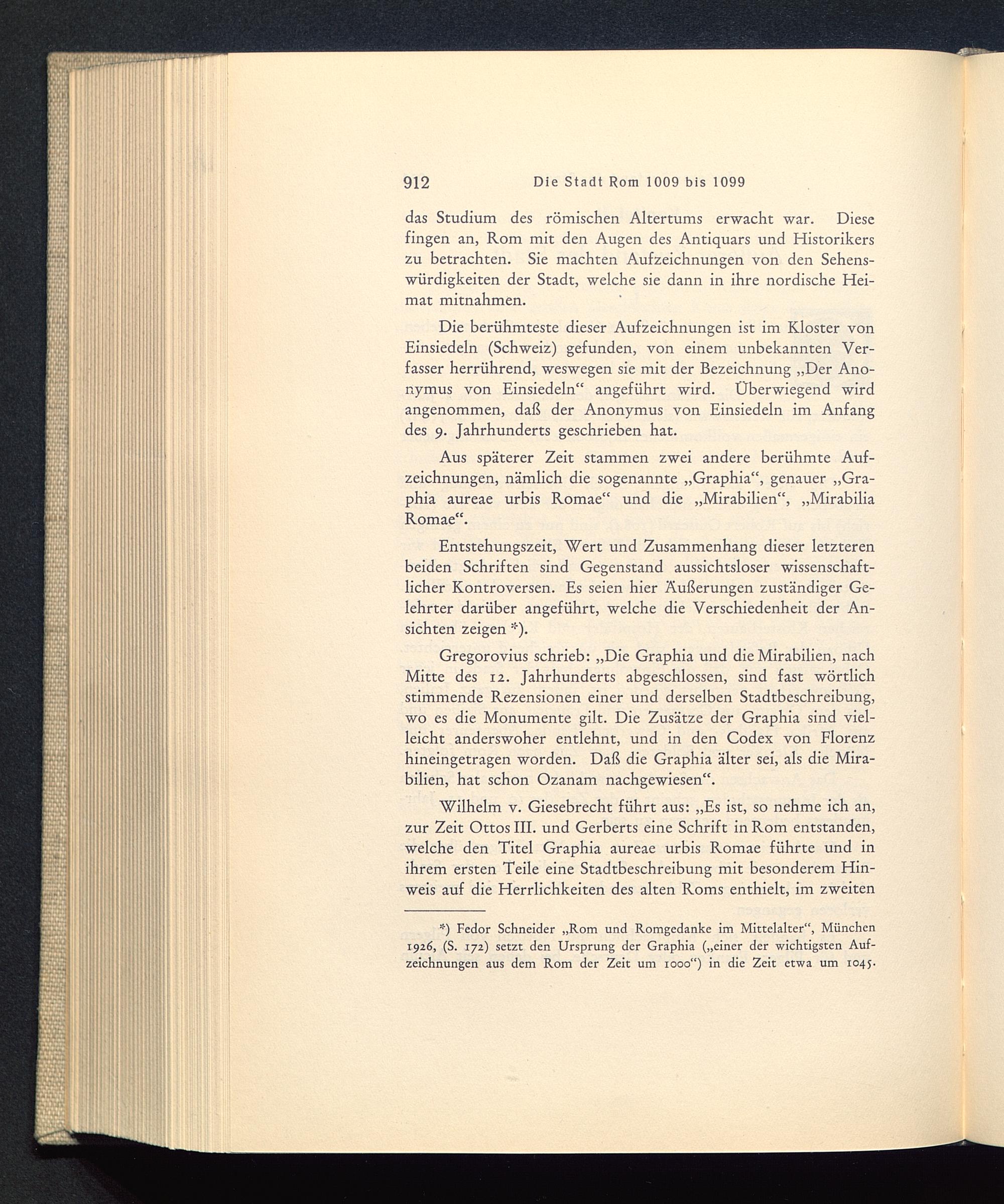 Wilhelm v. Giesebrecht führt aus: „Es ist, so nehme ich an,zur Zeit Ottos III. und Gerberts eine Schrift in Rom entstanden,welche den Titel Graphia aureae urbis Romae führte und inihrem ersten Teile eine Stadtbeschreibung mit besonderem Hin-weis auf die Herrlichkeiten des alten Roms enthielt, im zweiten