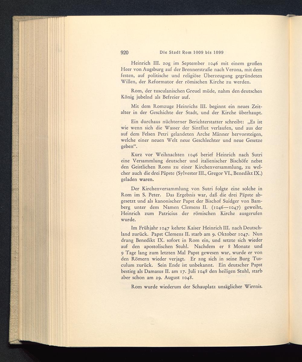 Der Kirchenversammlung von Sutri folgte eine solche inRom im S. Peter. Das Ergebnis war, daß die drei Päpste ab-gesetzt und als kanonischer Papst der Bischof Suidger von Bam-berg unter dem Namen Clemens II. (1046—1047) geweiht,Heinrich zum Patricius der römischen Kirche ausgerufenwurde.