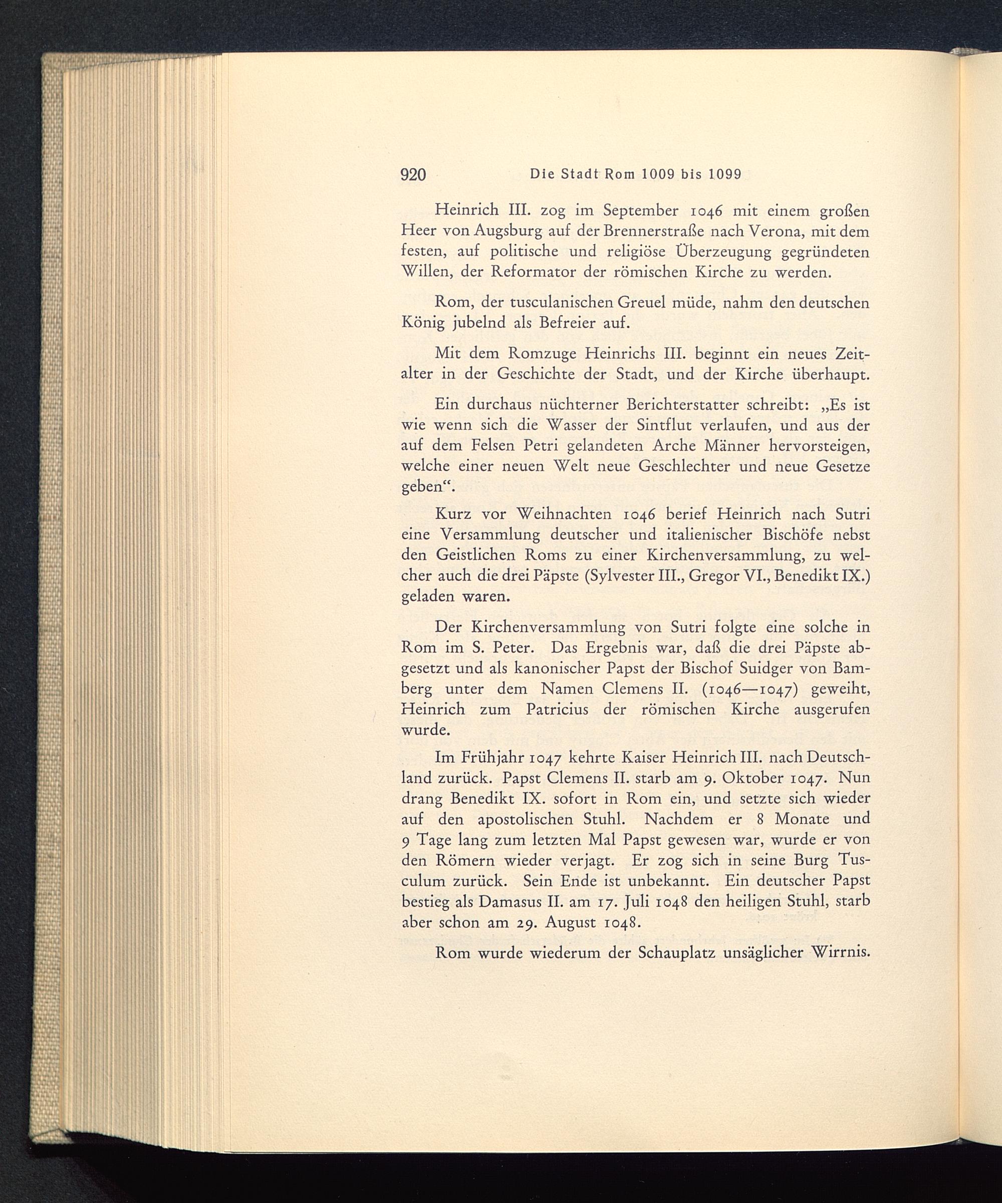 Kurz vor Weihnachten 1046 berief Heinrich nach Sutrieine Versammlung deutscher und italienischer Bischöfe nebstden Geistlichen Roms zu einer Kirchenversammlung, zu wel-cher auch die drei Päpste (Sylvester III., Gregor VI., Benedikt IX. )geladen waren.