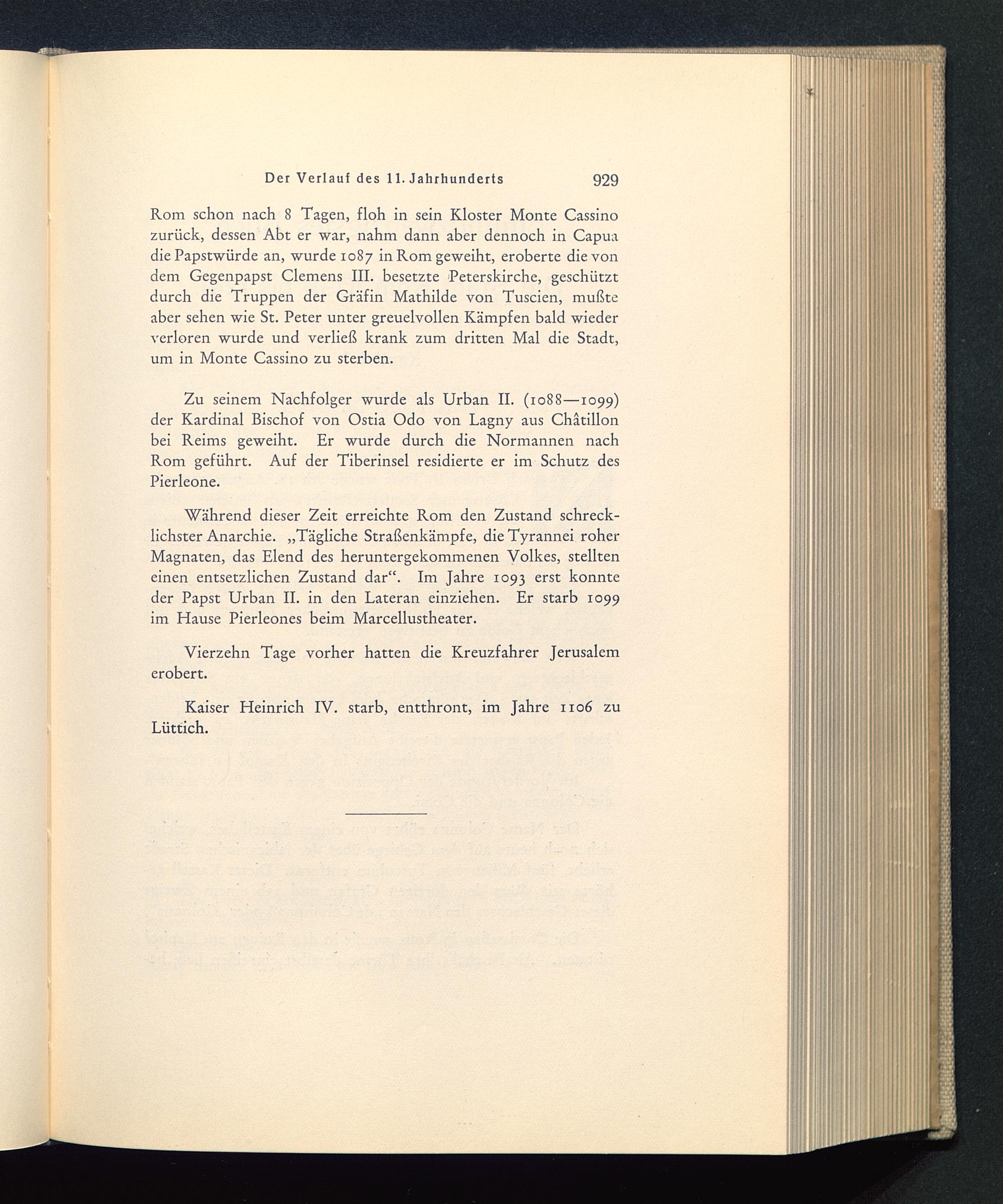 Rom schon nach 8 Tagen, floh in sein Kloster Monte Cassino zurück, dessen Abt er war, nahm dann aber dennoch in Capuadie Papstwürde an, wurde 1087 in Rom geweiht, eroberte die vondem Gegenpapst Clemens III. besetzte Peterskirche, geschütztdurch die Truppen der Gräfin Mathilde von Tuscien, mußteaber sehen wie St. Peter unter greuelvollen Kämpfen bald wiederverloren wurde und verließ krank zum dritten Mal die Stadt,um in Monte Cassino zu sterben.