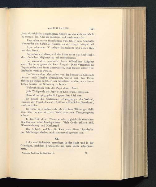 In den Ruin dieser Türme wurden zugleich die römischenGeschlechter selbst hineingerissen. Viele Große erlitten Exil,Gütereinziehung und Henkertod.