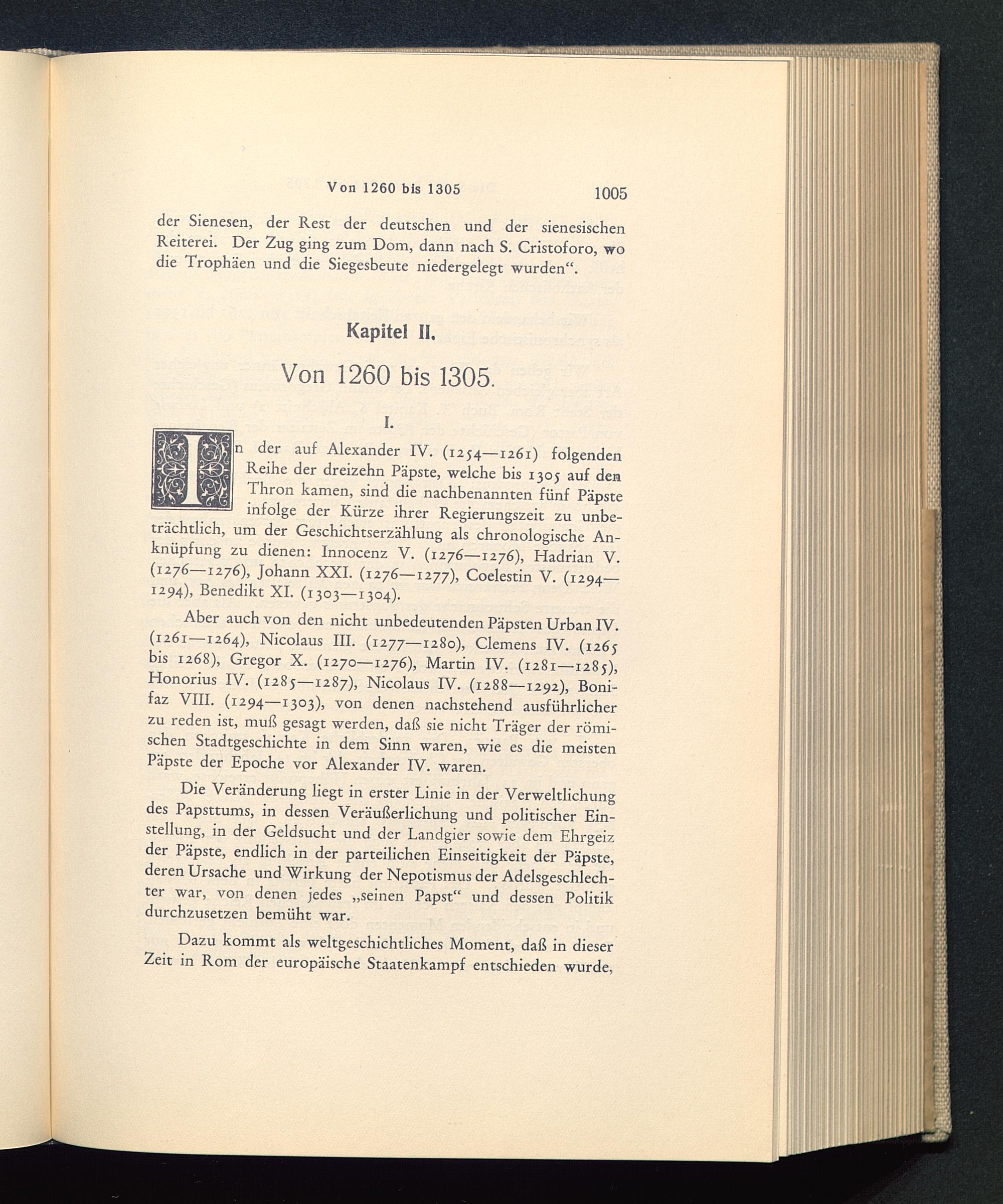 n der auf Alexander IV. (1254—1261) folgendenReihe der dreizehn Päpste, welche bis 1305 auf denThron kamen, sind die nachbenannten fünf Päpsteinfolge der Kürze ihrer Regierungszeit zu unbe-trächtlich, um der Geschichtserzählung als chronologische An-knüpfung zu dienen: Innocenz V. (1276—1276), Hadrian V.(1276—1276), Johann XXI. (1276—1277), Coelestin V . (1294—1294), Benedikt XI. (1303—1304).