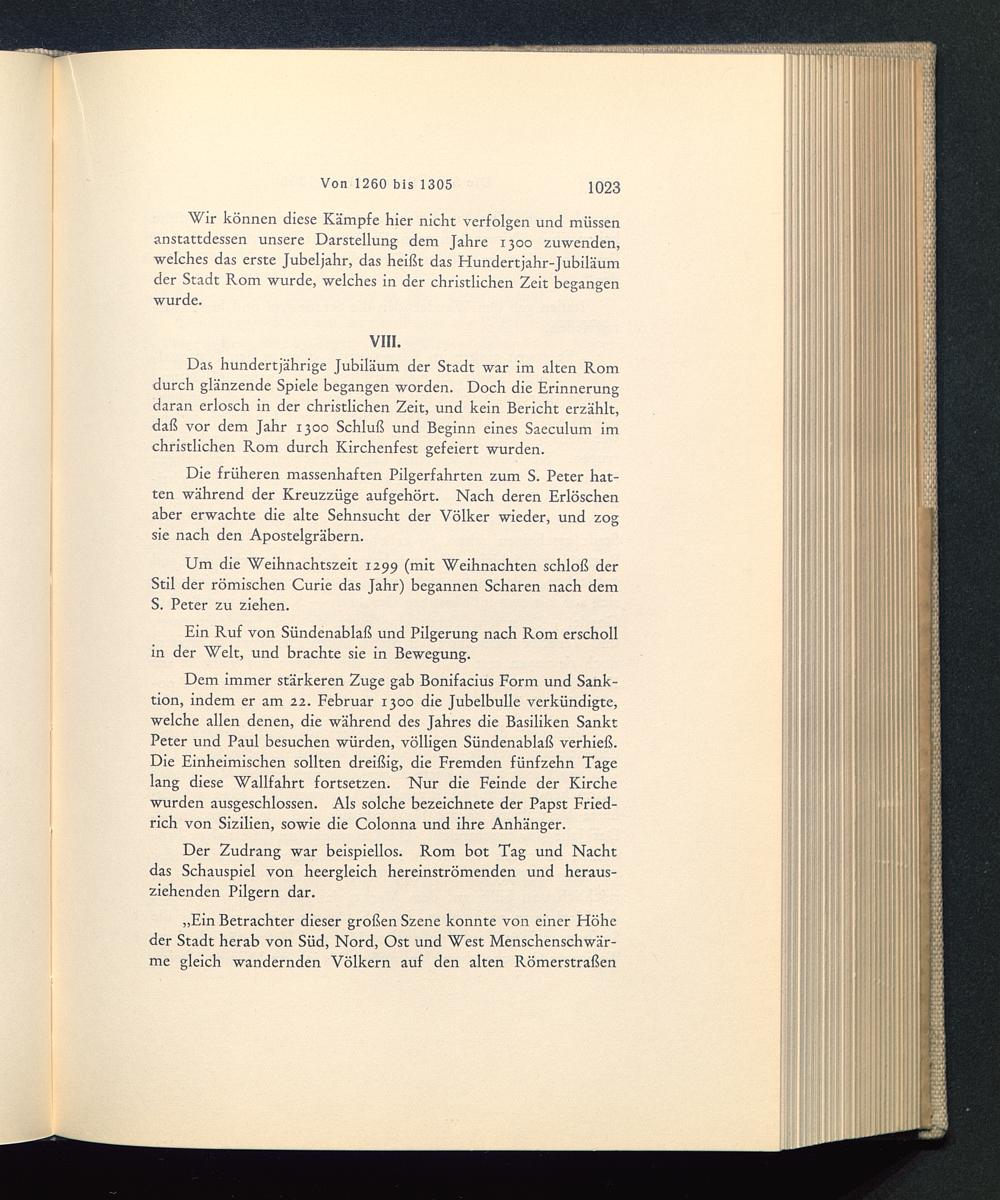Wir können diese Kämpfe hier nicht verfolgen und müssenanstattdessen unsere Darstellung dem Jahre 1300 zuwenden,welches das erste Jubeljahr, das heißt das Hundertjahr-Jubiläumder Stadt Rom wurde, welches in der christlichen Zeit begangenwurde.