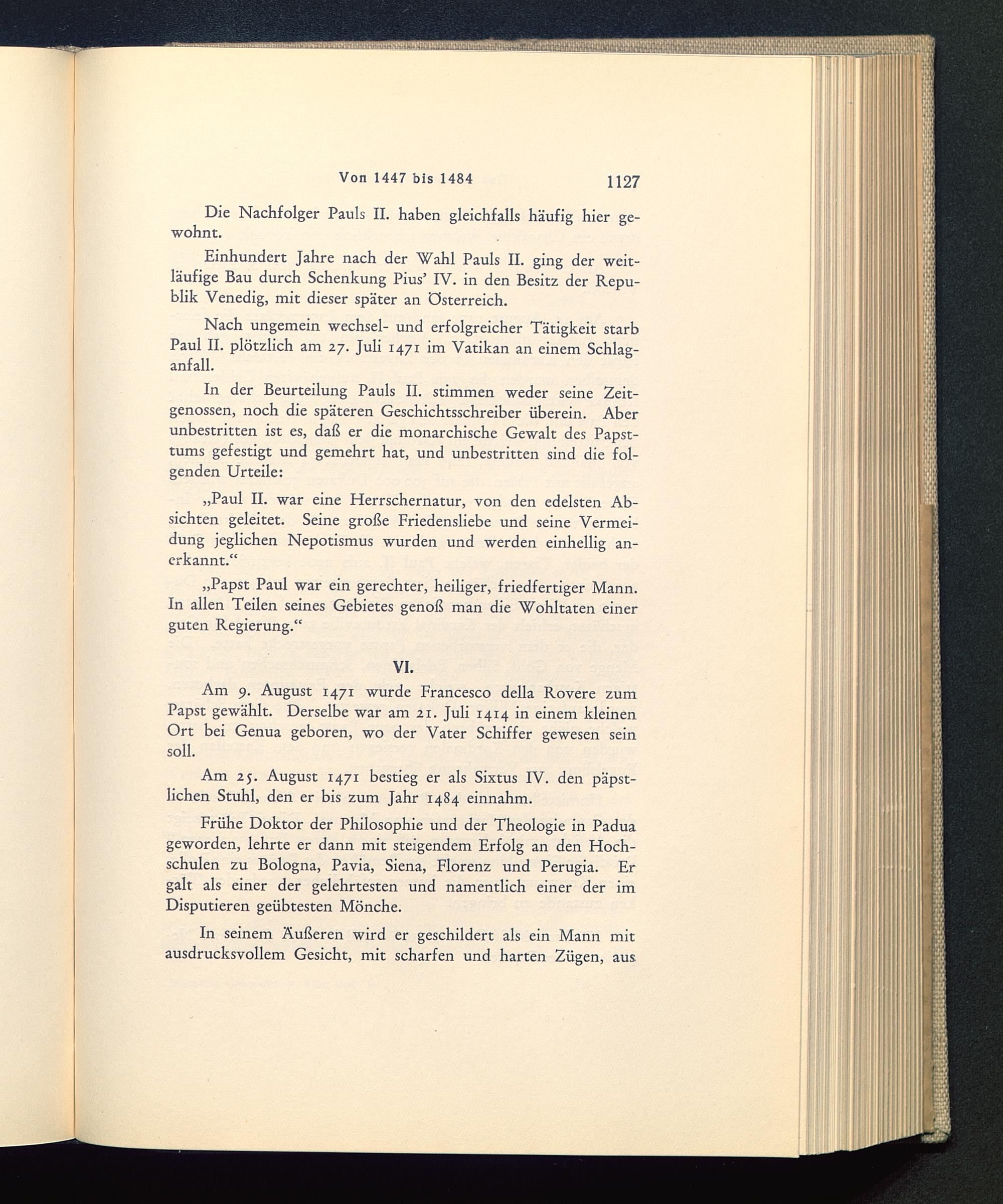 In der Beurteilung Pauls II. stimmen weder seine Zeit-genossen, noch die späteren Geschichtsschreiber überein. Aberunbestritten ist es, daß er die monarchische Gewalt des Papst-tums gefestigt und gemehrt hat, und unbestritten sind die fol-genden Urteile:
