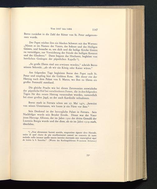 Borso starb in Ferrara schon am 27. Mai 1471, „beweintvon seinen Untertanen, wie kaum je ein Fürst vor ihm.“
